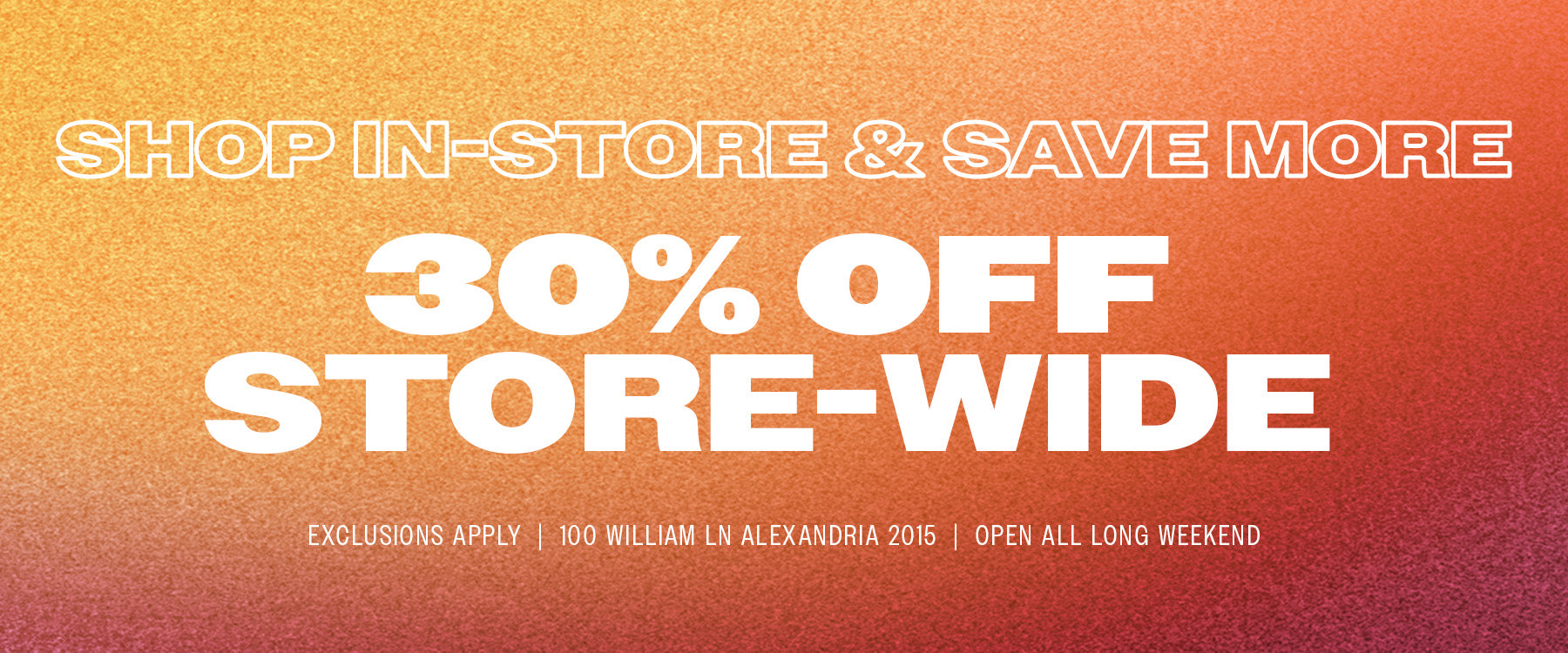LONG WEEKEND - 25% OFF