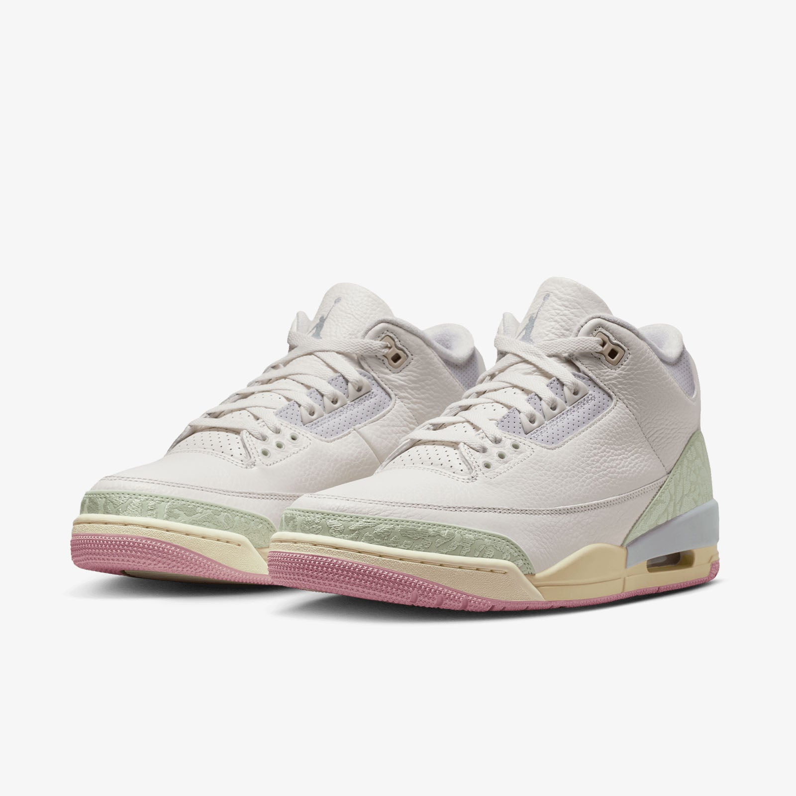 These Jordans are fresher than a spring bouquet. Crisp leather in Sail acts as the perfect canvas for Jade Aura and Iris Whisper details to bloom along the upper. Aura Pink on the logo and outsole tie the look together, and an elephant print is embroidered on the heel for a delicate finish.