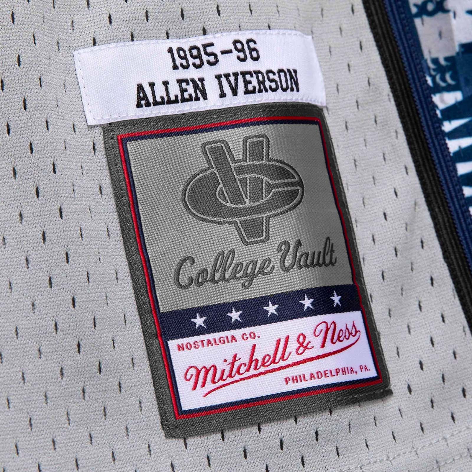 - Mitchell & Ness College Vault Jock Tag 1995-96 ALLEN IVERSON at lower left front.