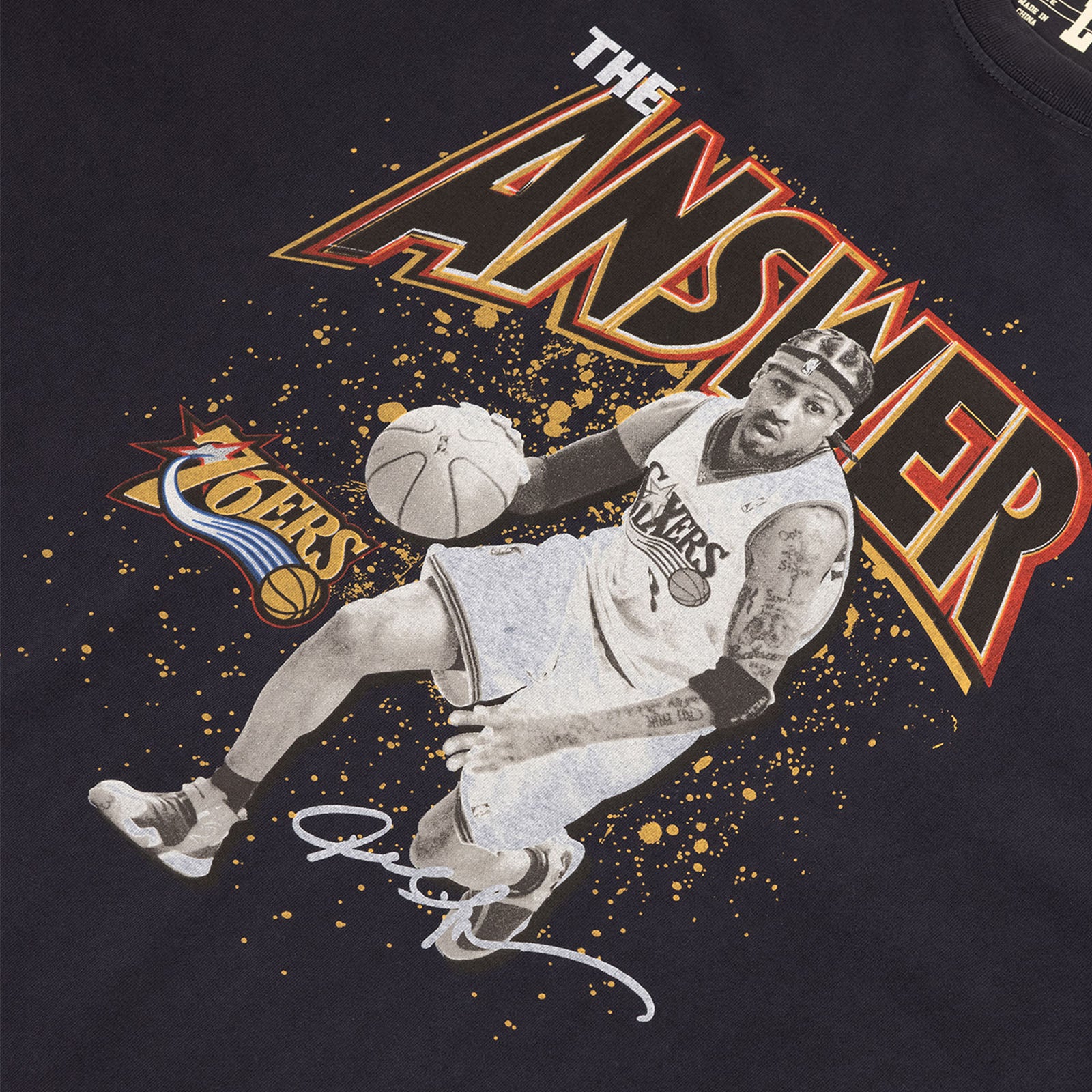 Vintage style graphic tee for AI. Selected with the first pick by the Philadelphia 76ers, Allen Iverson has become the franchise's most beloved star. Named as one of the game's 75 greatest players, "The Answer" has been league MVP and taken the team to the NBA Finals.