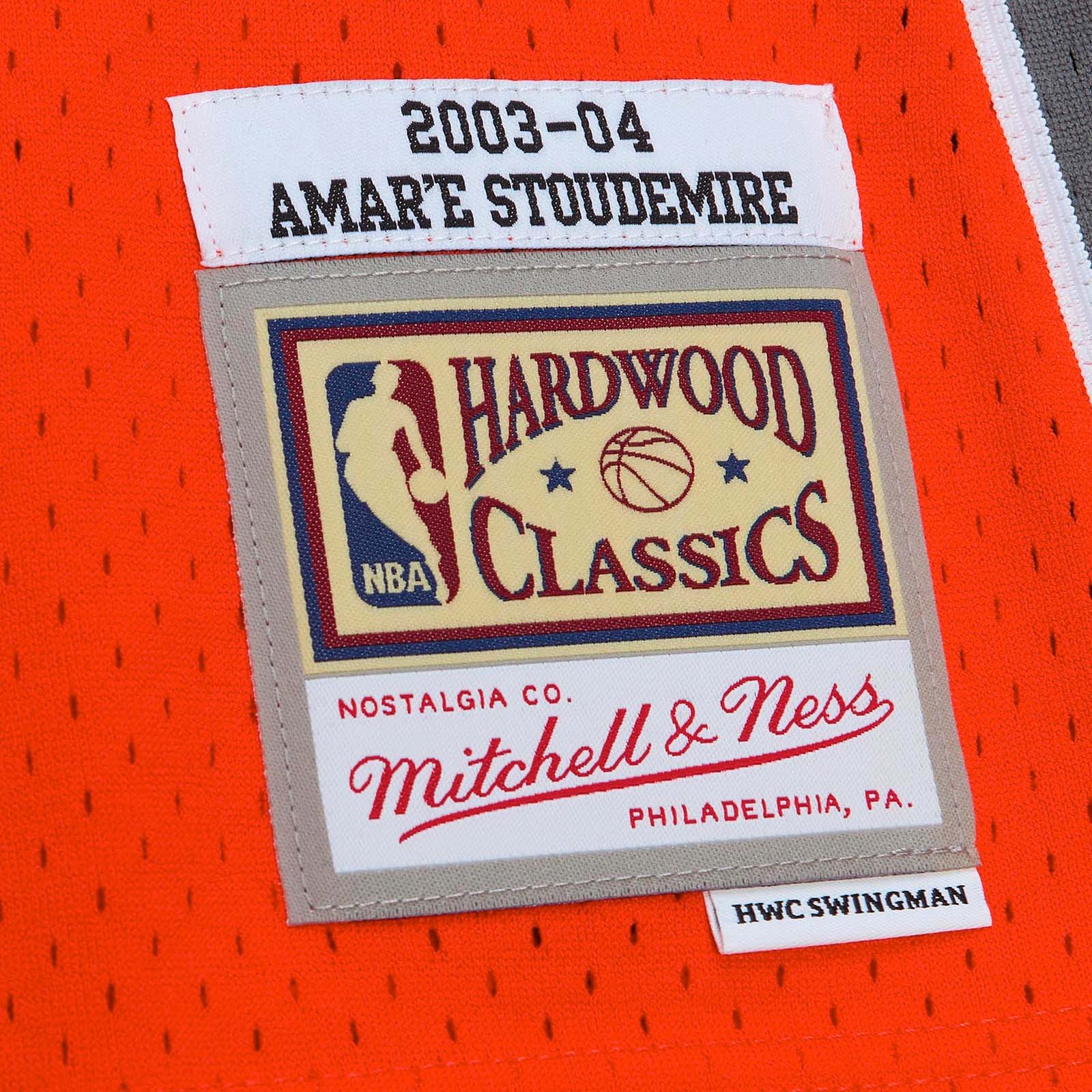 - Mitchell & Ness HWC Swingman woven jock tag and woven label 2003-04 AMAR'E STOUDEMIRE at lower left front.