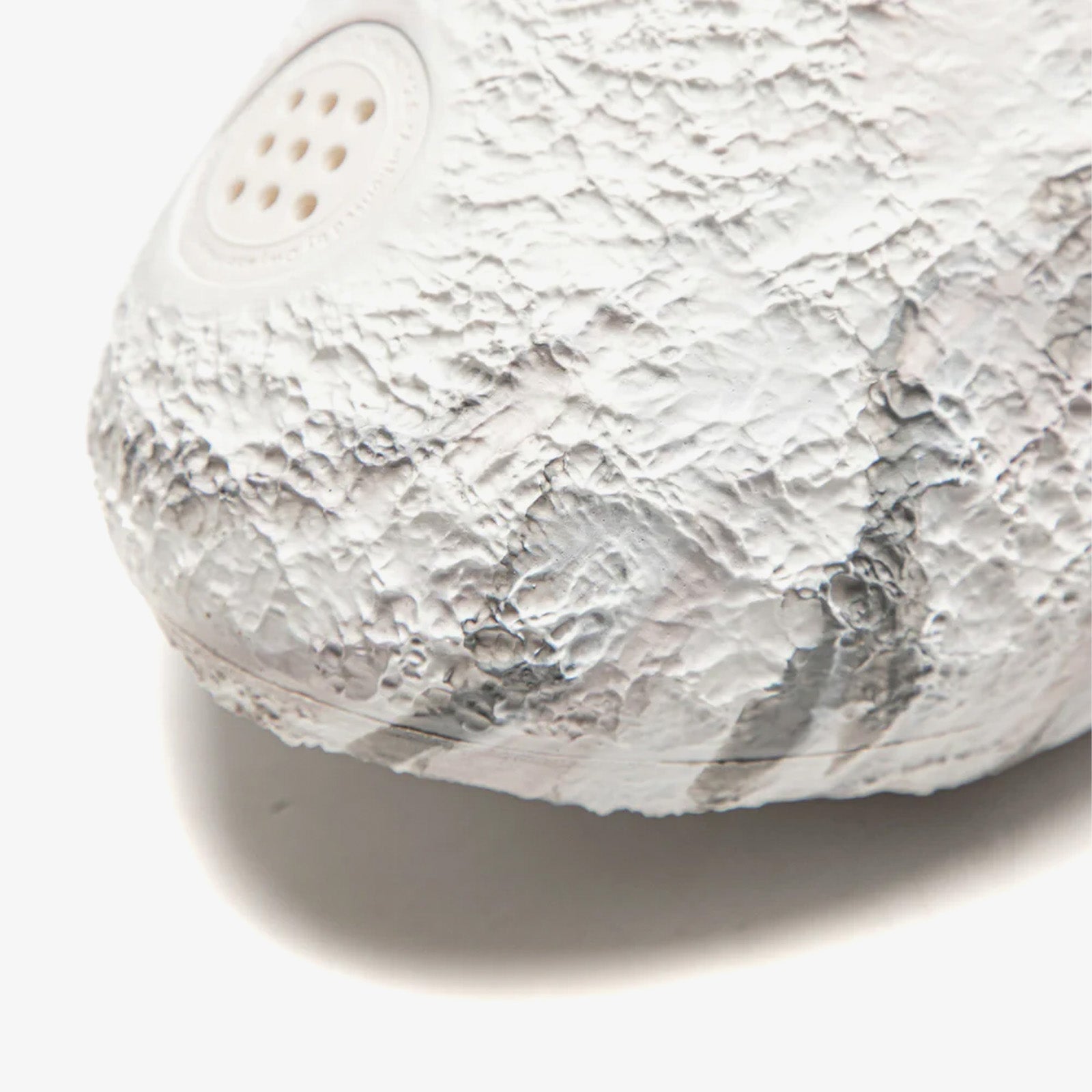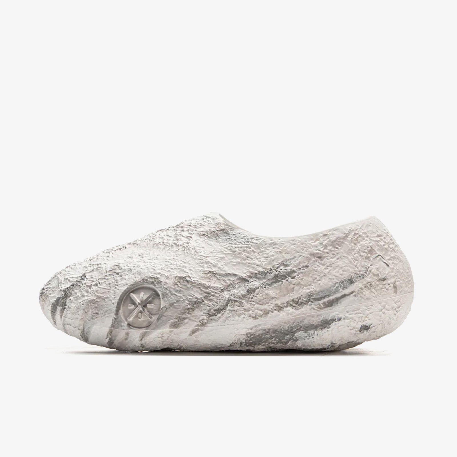 It is entirely 3D-printed, giving it a unique and futuristic look with a soft, cushion like feel. Multiple layers of the 3D printed sole provide comfort with a grid-like design to allow breathability. The surface texture resembles a rocky or lunar-like pattern, fitting the "Lunar Rock" theme. It has a minimalist and slip-on design with no visible laces, contributing to its sleek aesthetic. The Way of Wade branding is subtly embossed on the side.
