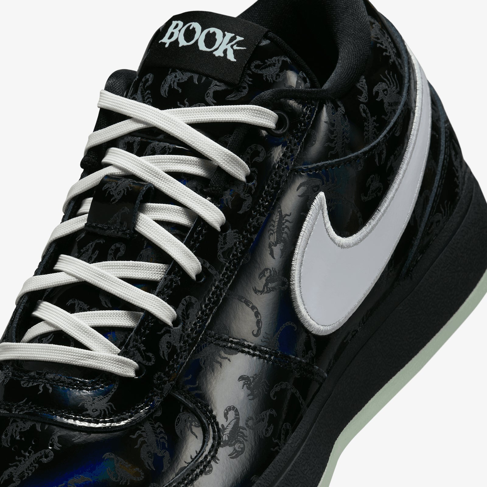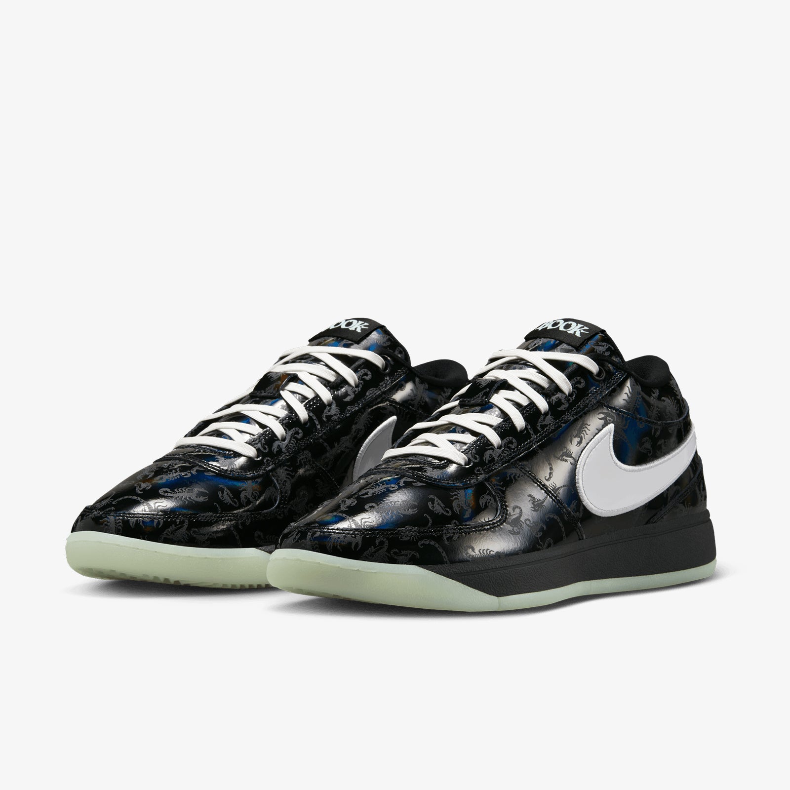 The outside is pure Book, with a workwear-inspired upper adds durability, while a suede collar and genuine leather across the forefoot provide more reinforcement and a familiar, plush, broken-in feel out of the box. The pull tab at the heel is inspired by a book spine, with numbers referencing chapters in an ongoing story. A top-loaded Zoom Air unit in the heel provides a measure of responsive speed when taking off in the open floor and coming to sudden halts. A top-loaded midfoot strong plastic plate helps keep your foot stable when making sudden movements like sharp plants The strong plastic sidewall cage adds even more stability. The multidirectional, Herringbone-like pattern gives you sticky traction that’s ideal for lateral cuts and quick changes in movement. The soft, responsive full-length foam can help you keep running and cutting in comfort.