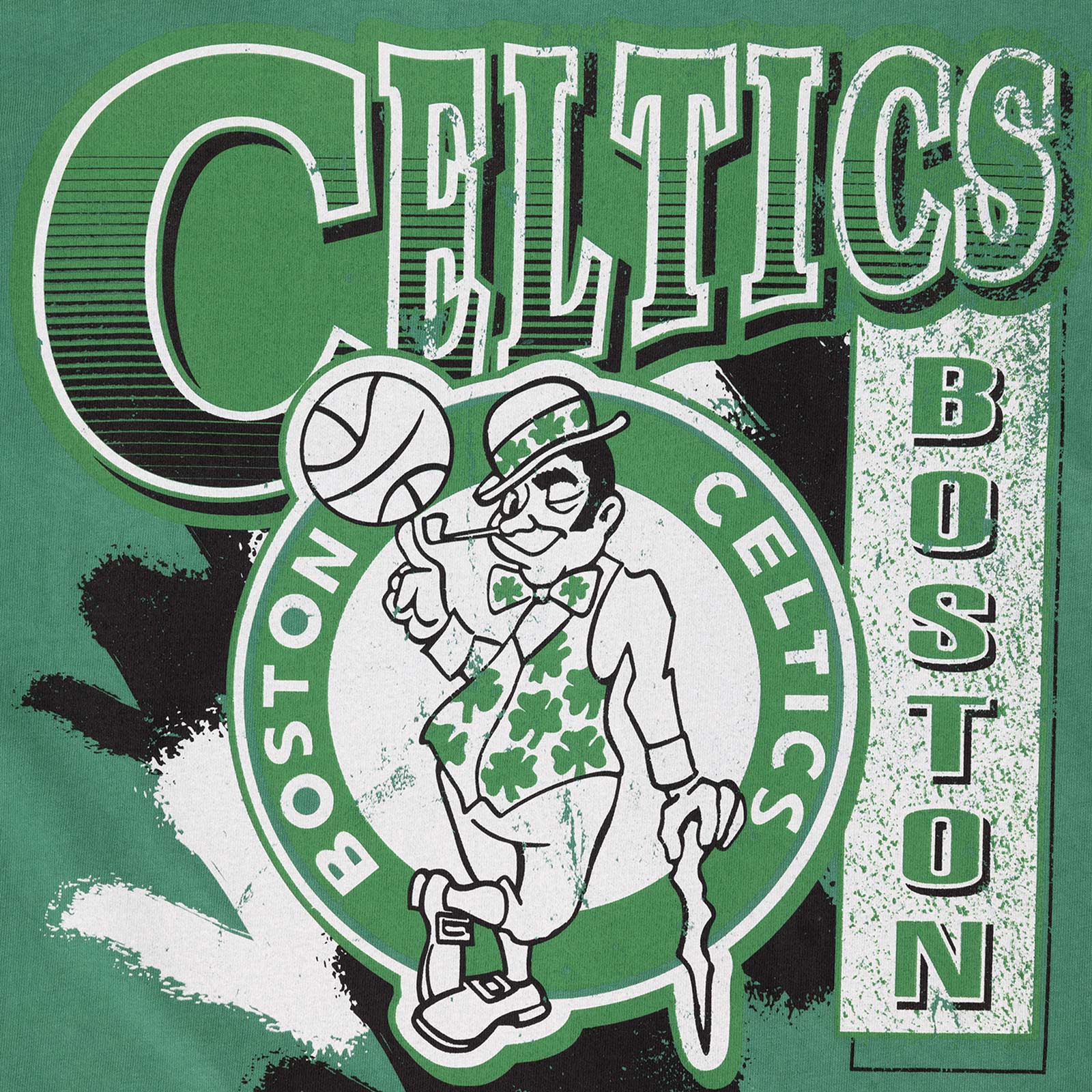 '90s style brush off print for the Boston Celtics. One of the most storied teams in the league with banner and legends galore.