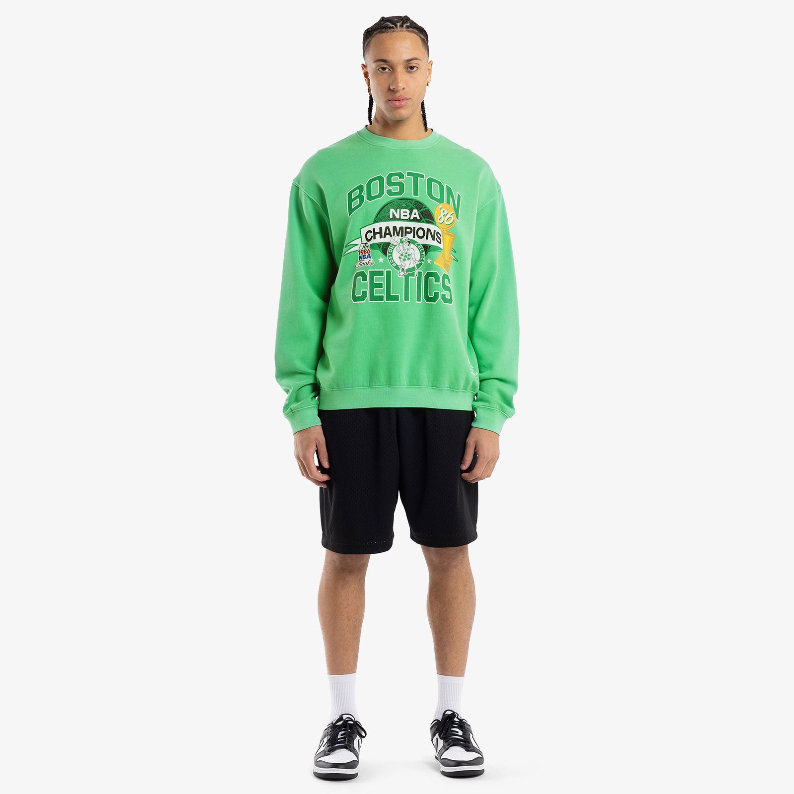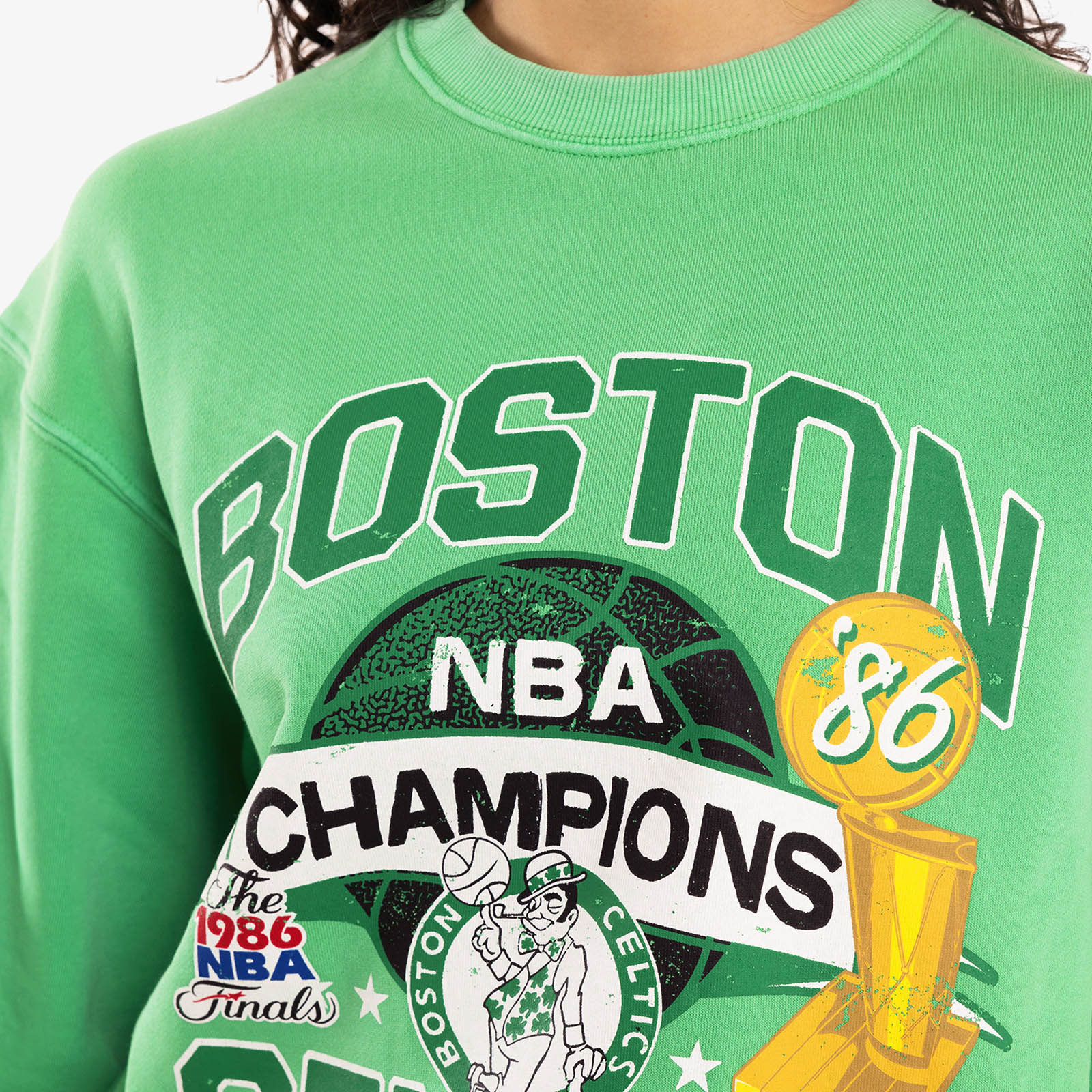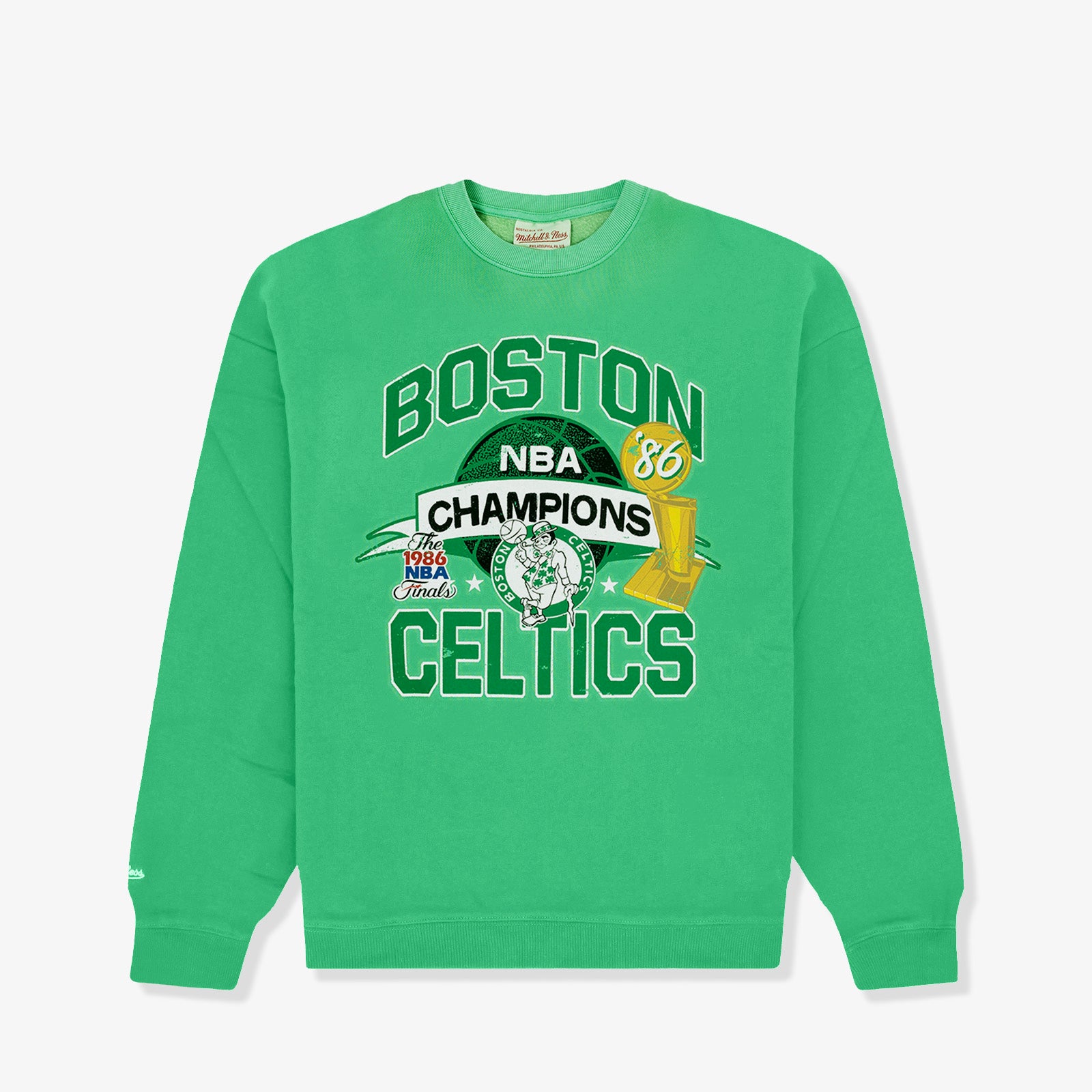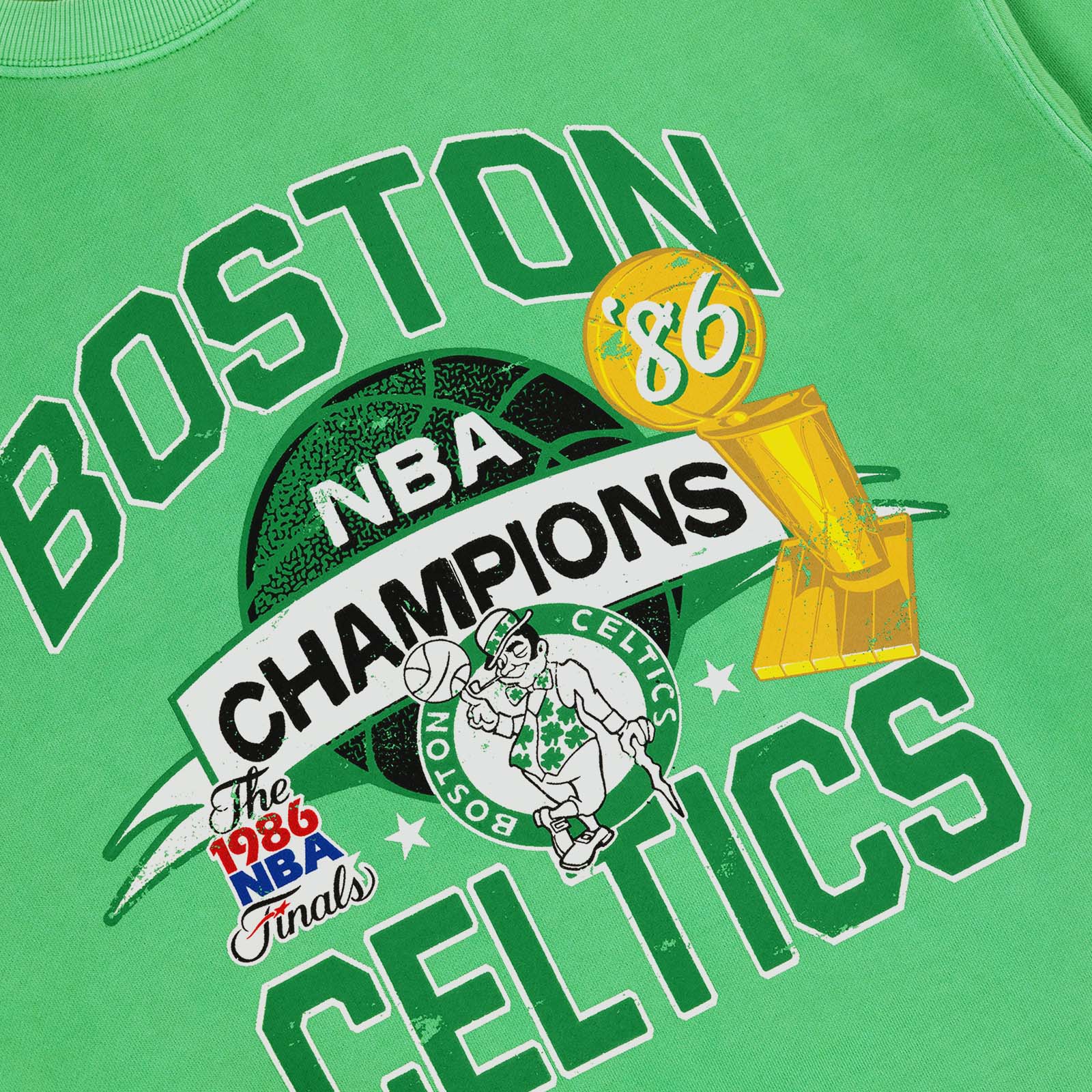 A crew sweatshirt celebrating Boston's 1986 NBA Finals victory over the Houston Rockets. This was Boston's 16th Championship, their last of the Larry Bird era alongside NBA legends Kevin McHale and Robert Parish.