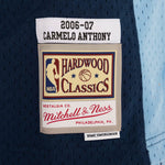 - Mitchell & Ness HWC Swingman woven jock tag and woven label 2006-07 CARMELO ANTHONY at lower left front.