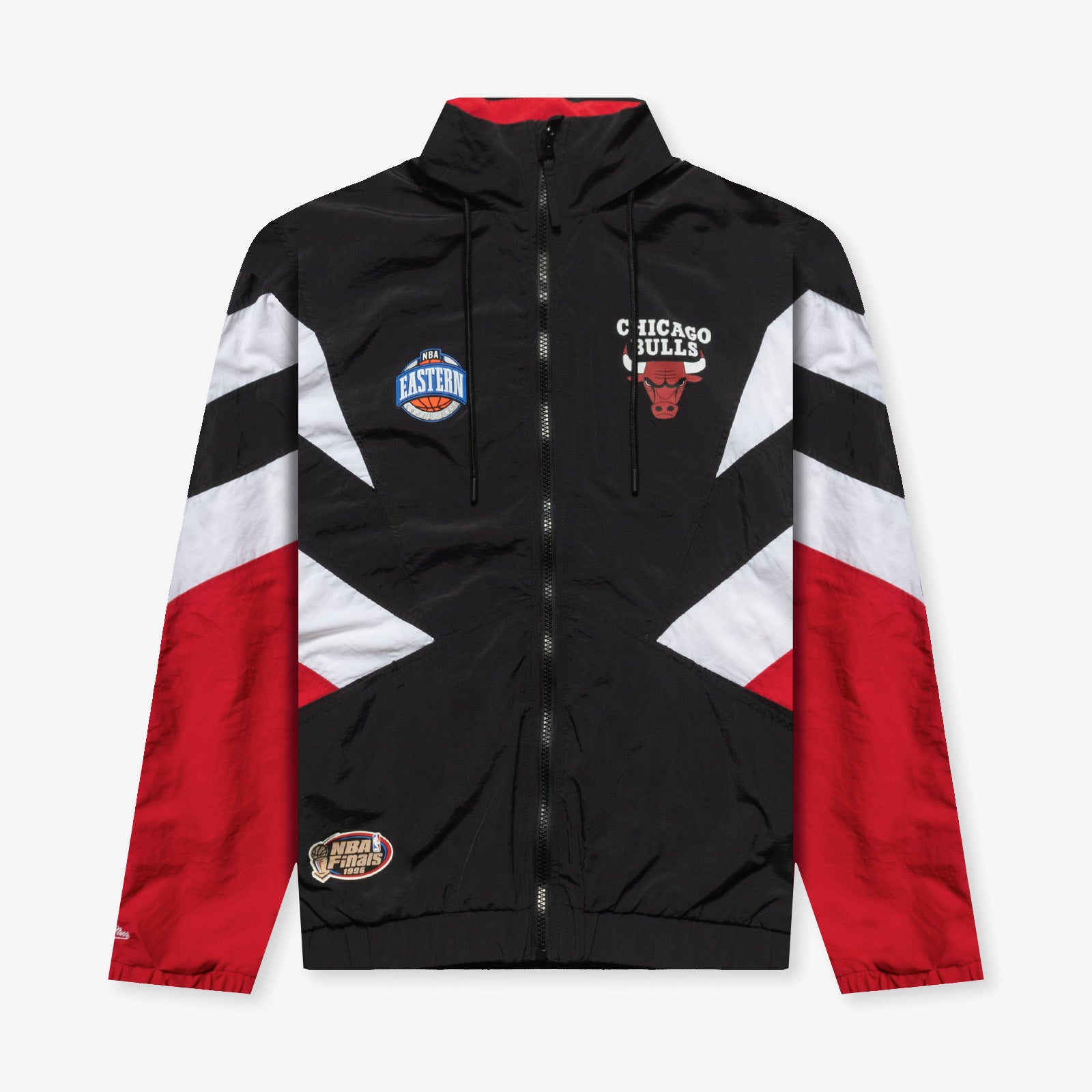 Bring the retro vibes to your game day 'fits with the Mitchell & Ness Chicago Bulls Spray Jacket. Printed team graphics throughout signify your connection to your fave team, while contrast panels transform this piece into a bold statement and the versatile roll-away hood with velcro lets you customise your look.
