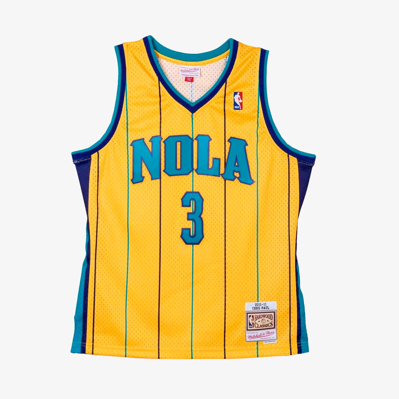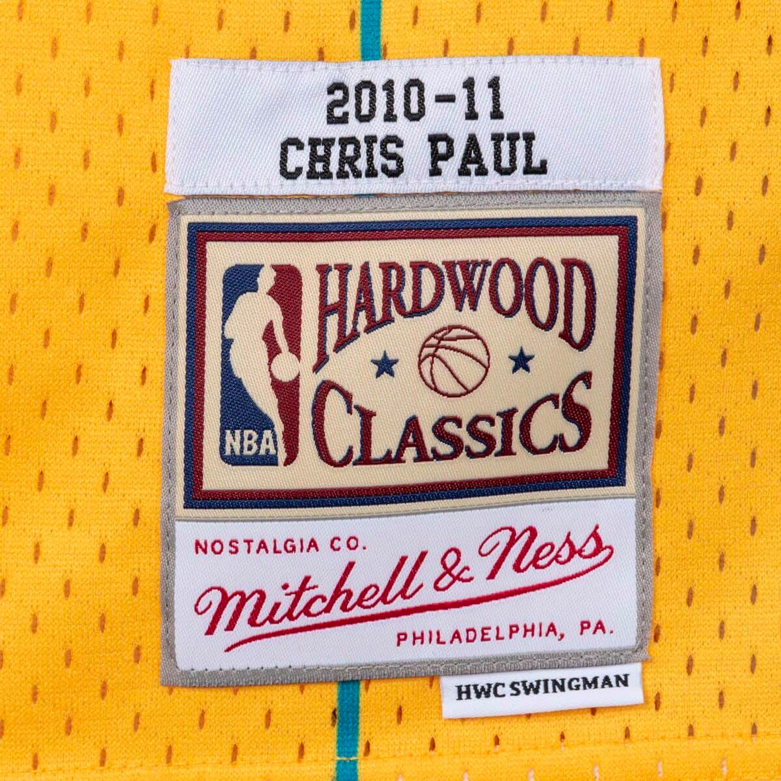 - Mitchell & Ness HWC Swingman woven jock tag and woven label 2010-11 CHRIS PAUL at lower left front.