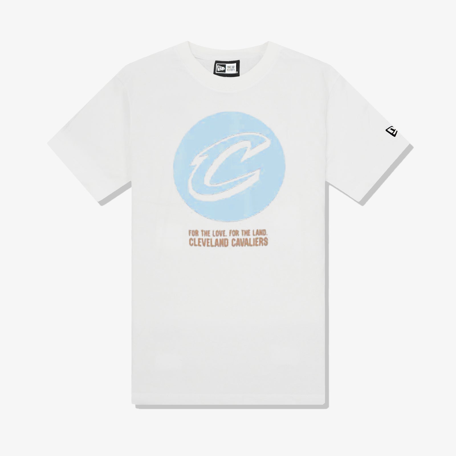 White 2022-23 City Edition T-Shirt for the Cleveland Cavaliers. Continuing their partnership with designer Daniel Arsham, “THE LAND” wordmark represents “the sunny shores of Lake Erie”, while the double brown drop shadows symbolise Ohio’s bountiful soil.