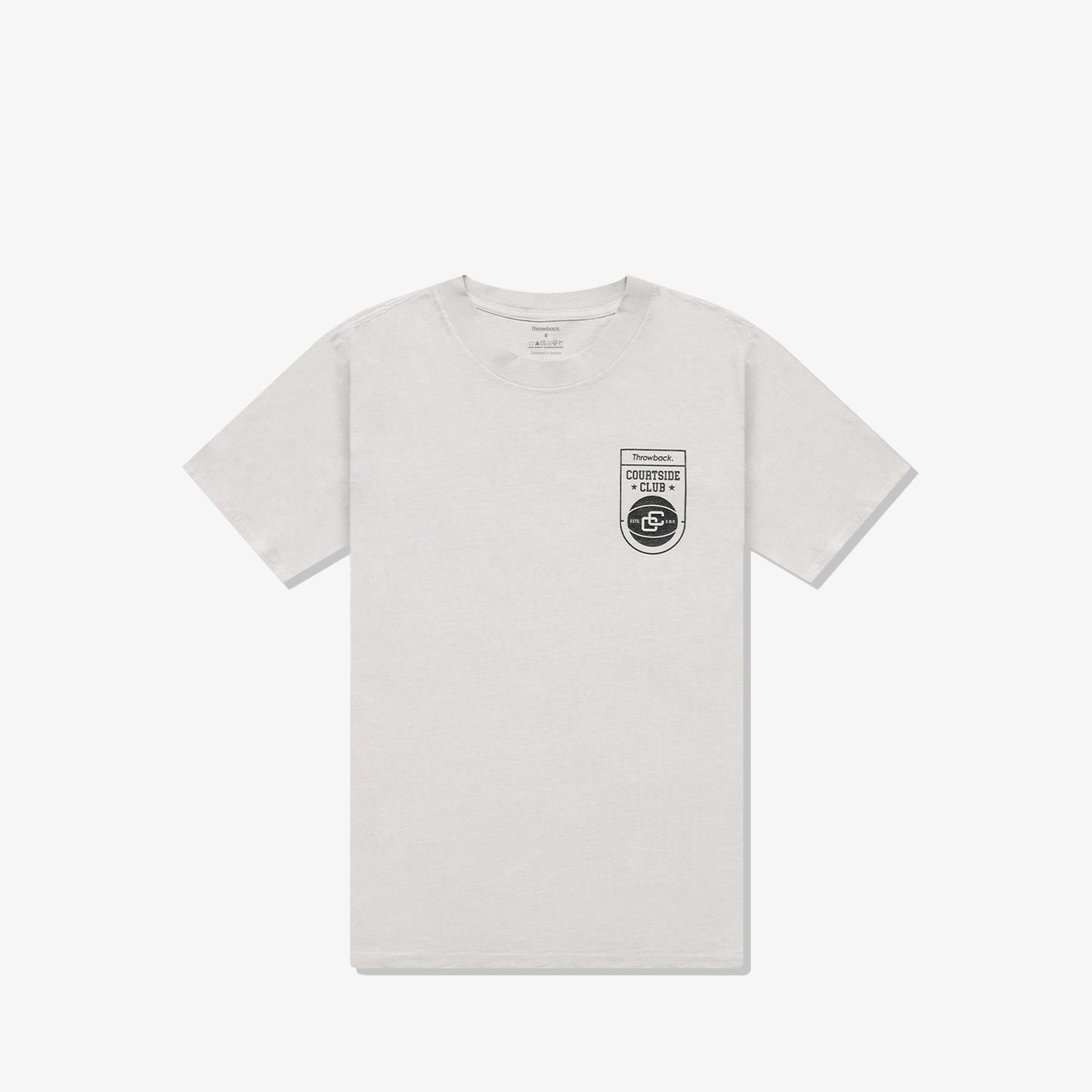 Introducing the Throwback Courtside Club Tee Collection, boxy tees crafted from 100% luxury heavy-weight cotton with a soft finish in an oversized silhouette. This racing tee features a ribbed crewneck collar along with Throwback's Courtside Club crest on the front and a larger design on the back. As seen on Jamal Murray.