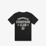 Introducing the Throwback Courtside Club Tee Collection, boxy tees crafted from 100% luxury heavy-weight cotton with a soft finish in an oversized silhouette. This racing tee features a ribbed crewneck collar along with Throwback's Courtside Club crest on the front and a larger design on the back. As seen on Jamal Murray.
