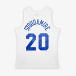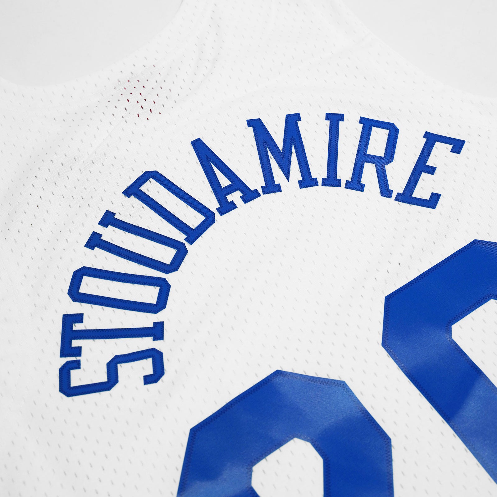 - Mitchell & Ness HWC Swingman woven jock tag and woven label 1996-97 DAMON STOUDAMIRE at lower left front.