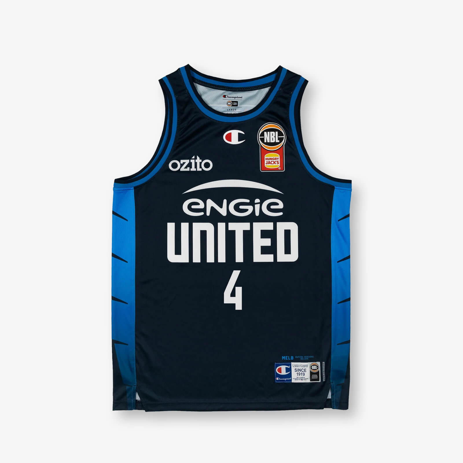 Champion brings its signature quality to the court with the Melbourne United 25/26 Primary Jersey - Dash Daniels. Designed for performance and style, this jersey is crafted with premium fabrics for superior comfort and durability. Featuring detailed team wordmarks, player name, and number in high-quality fabric appliqués and silicone Champion C and NBL logos for an authentic and top quality finish.