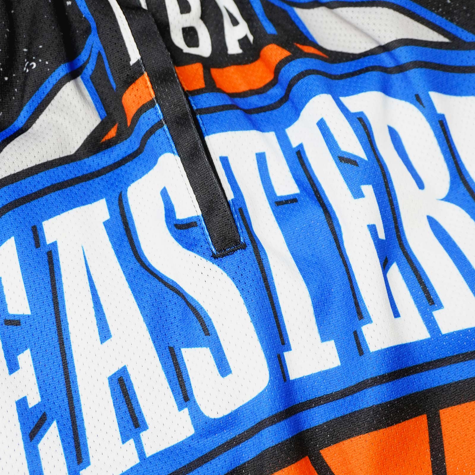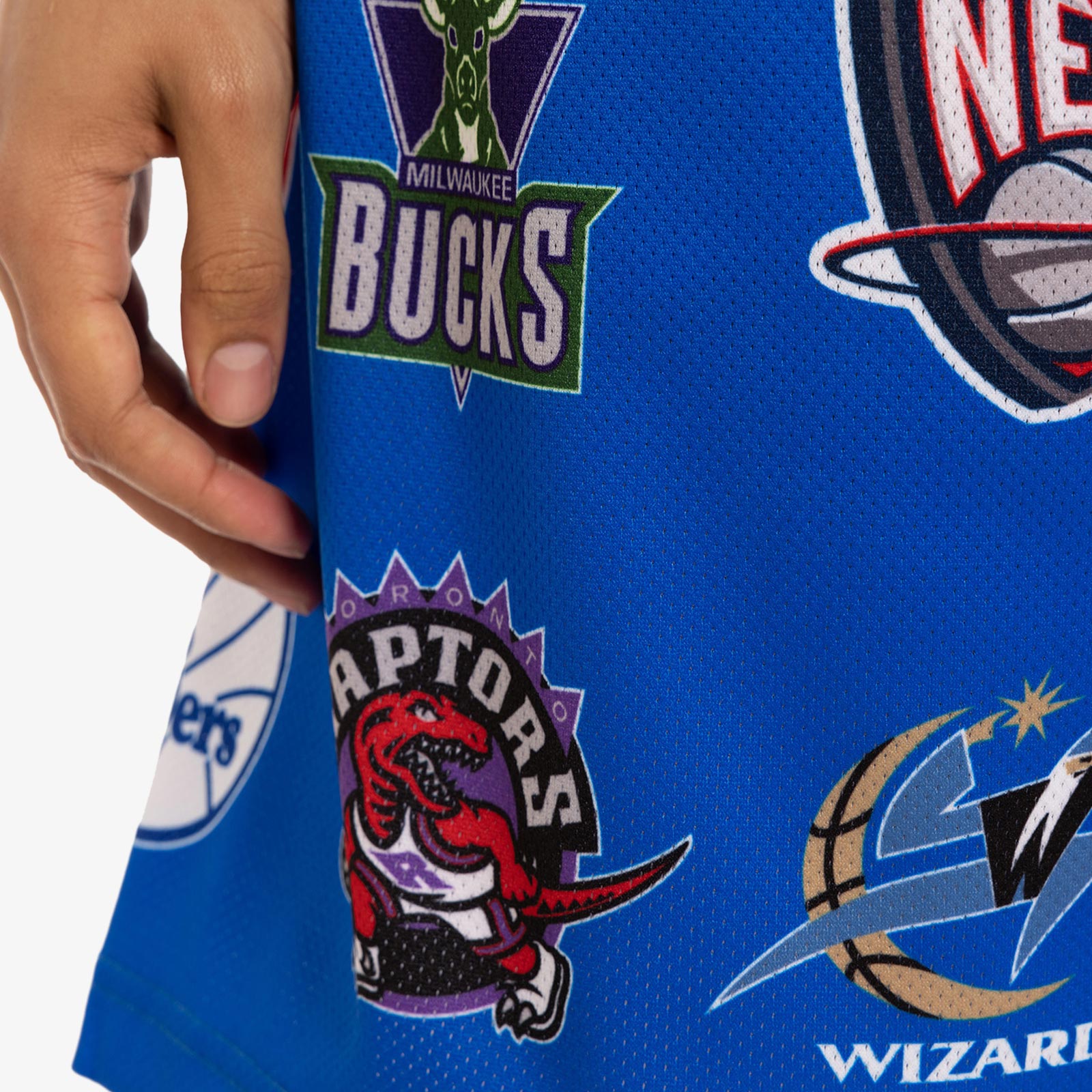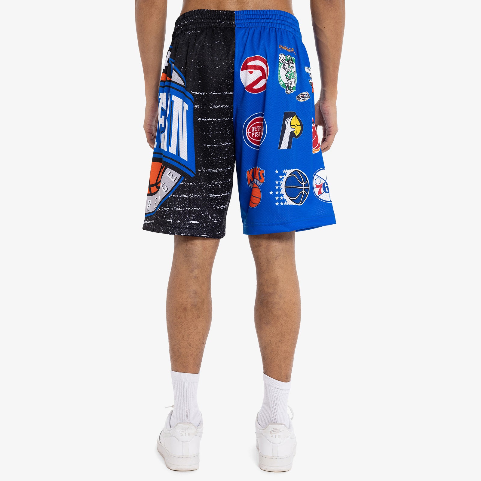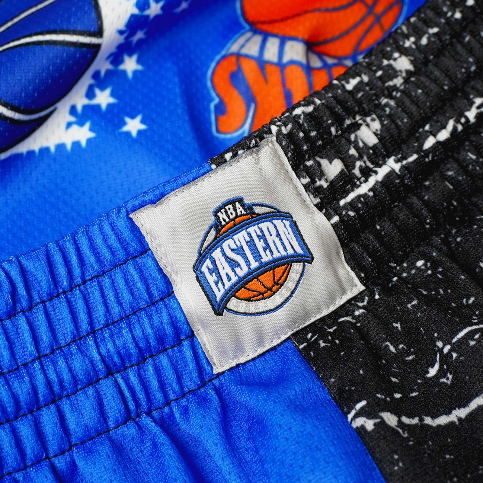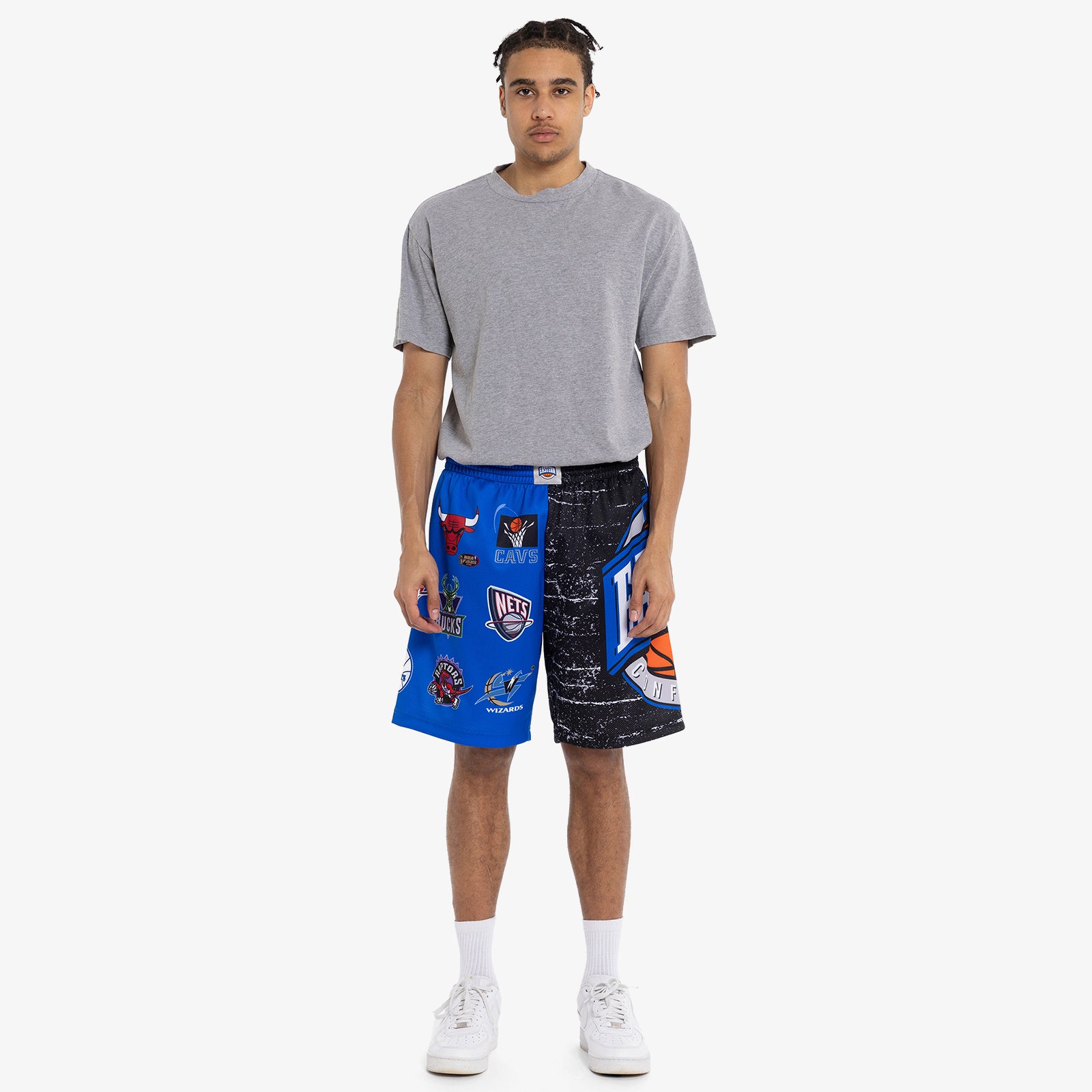 Half and half large print shorts repping the Eastern Conference of the '90s. Featuring vintages logos from the era including the now defunct New Jersey Nets.