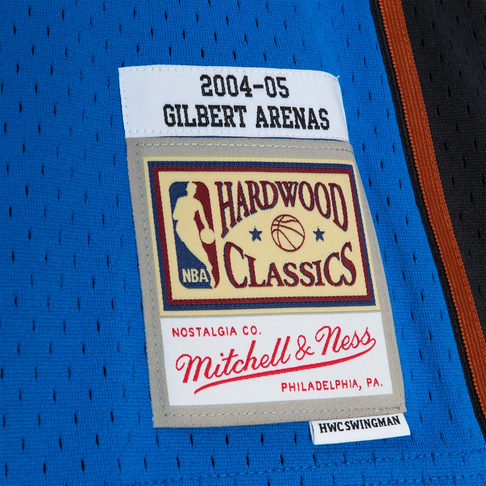 - Mitchell & Ness HWC Swingman woven jock tag and woven label 2004-05 GILBERT ARENAS at lower left front.