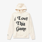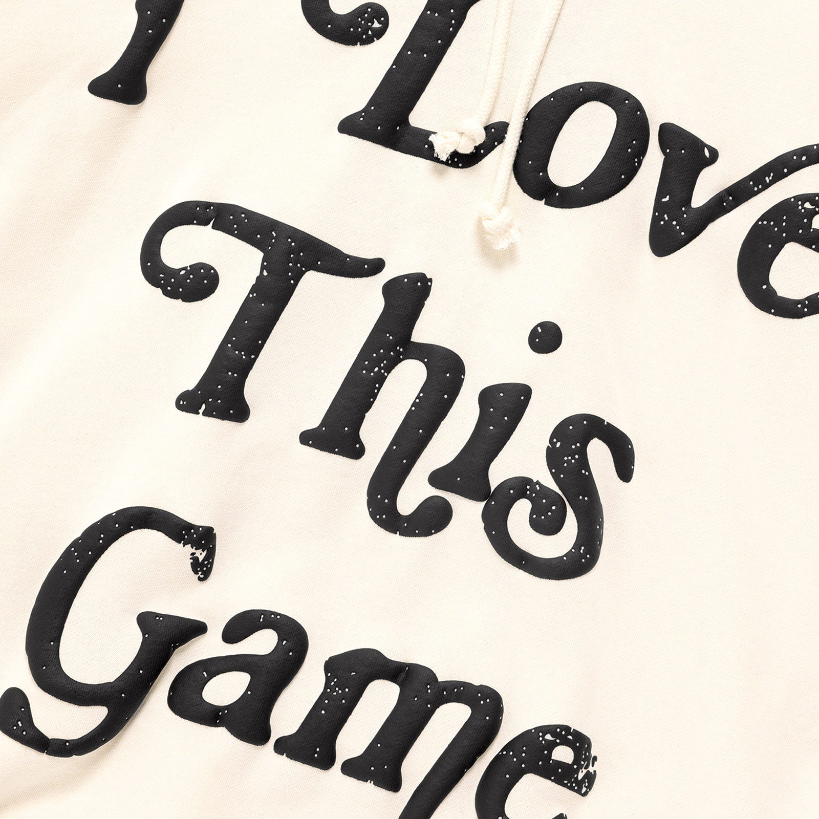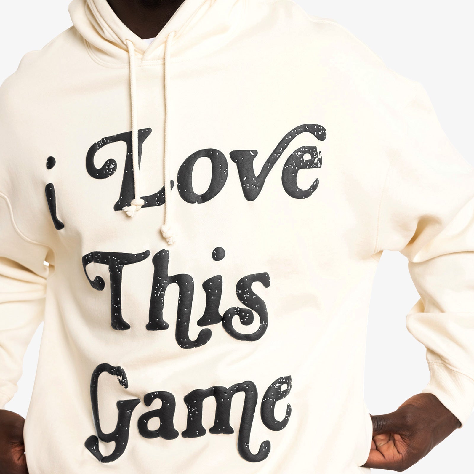 "I Love This Game" unbleached hoodie celebrating the game we love. Featuring puff print distressed graphics and a stylised net, a stylish way to express your love for the game.