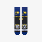 Your 2022-23 City Edition socks for the Indiana Pacers. Celebrates the completion of a renovation to one of the world’s most iconic venues. Like its structural counterpart, this uniform stays supported by solid trusses running from top to bottom.