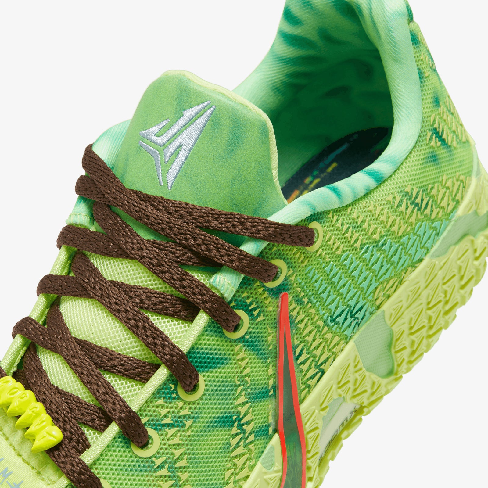 This special design reflects Ja’s ability to shine when the lights come on after he’s grinded in the dark to be great. It has a white and grey scratch pattern featuring a bright “Ja” graffiti style hit. It’s tooled with a Zoom X for that bouncy feel to help you flash above your competition.