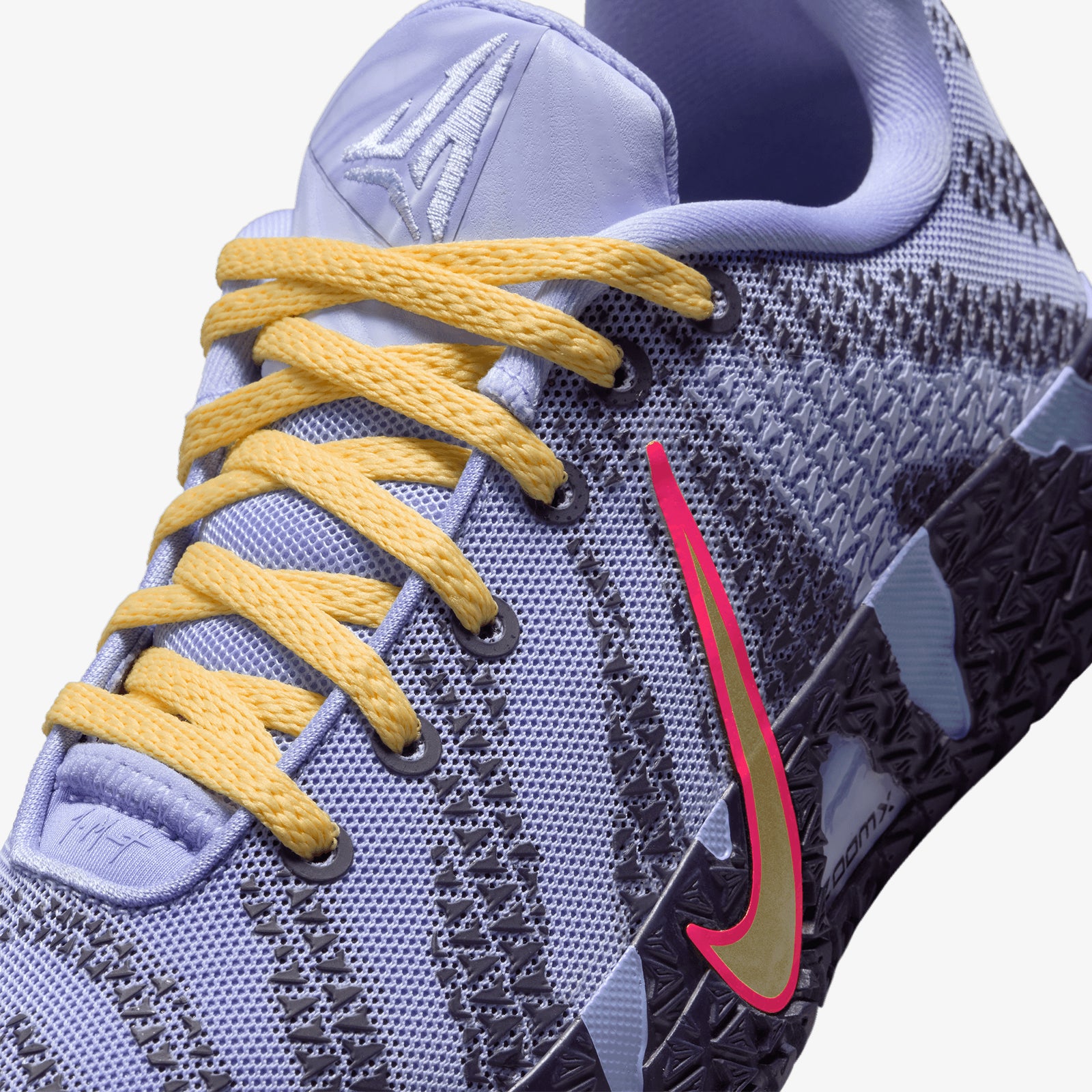 This special design reflects Ja’s ability to shine when the lights come on after he’s grinded in the dark to be great. It has a white and grey scratch pattern featuring a bright “Ja” graffiti style hit. It’s tooled with a Zoom X for that bouncy feel to help you flash above your competition.