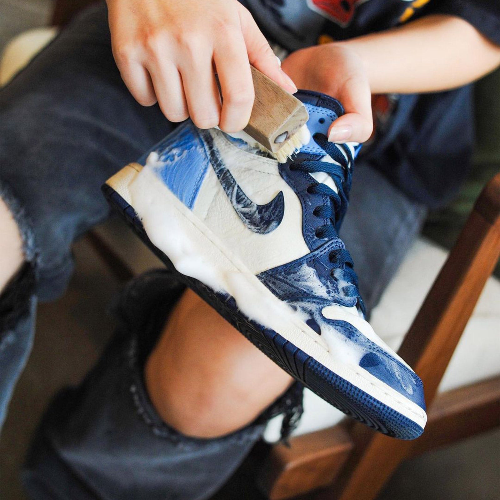 NOTE: When cleaning premium leather, suede, cotton mesh and other delicate materials take extra care and be gentle. We highly recommend using our Premium Shoe Cleaning Brush. The softer hog bristles are better suited for use on delicate surfaces.