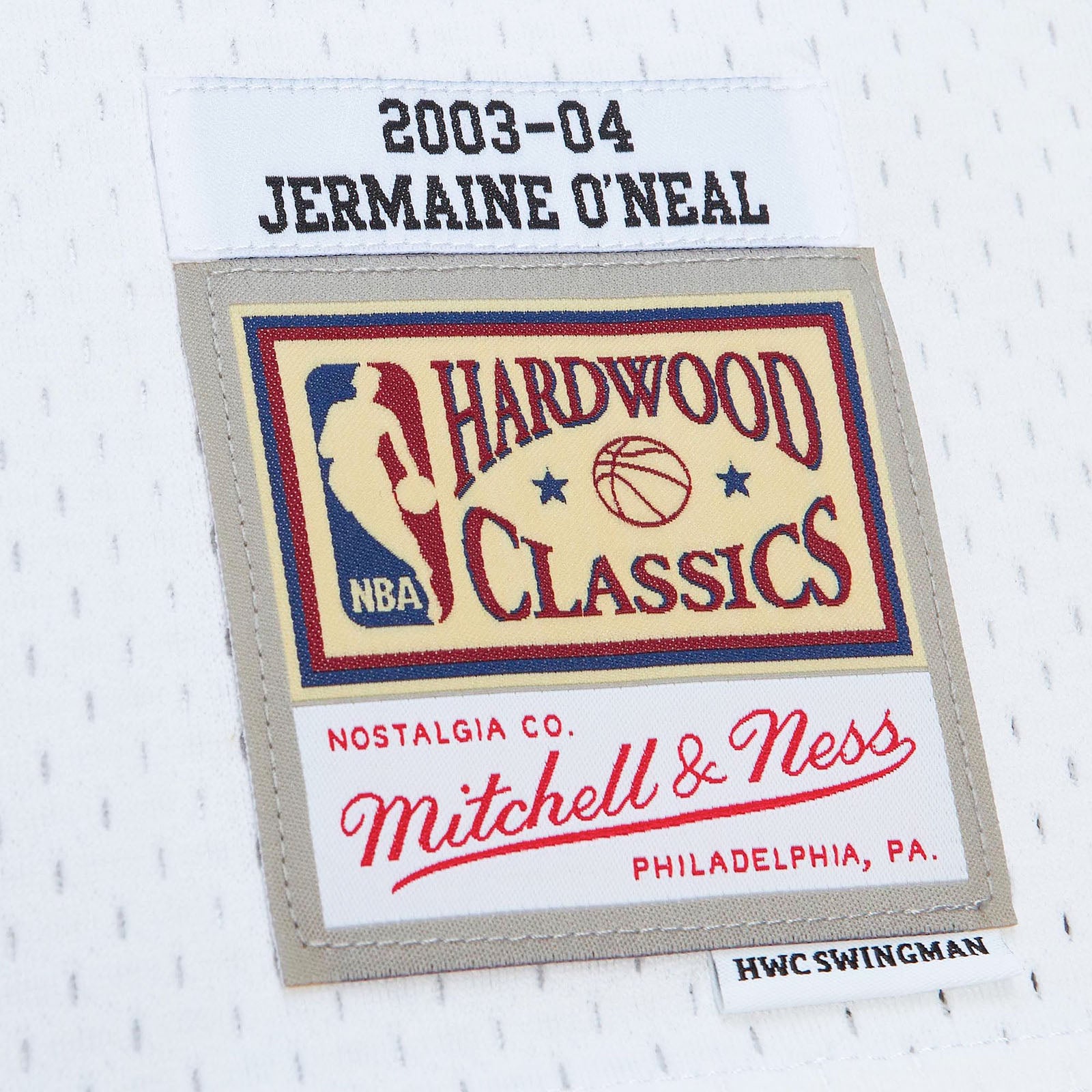 - Mitchell & Ness HWC Swingman woven jock tag and woven label 2004-06 JERMAINE O'NEAL at lower left front.