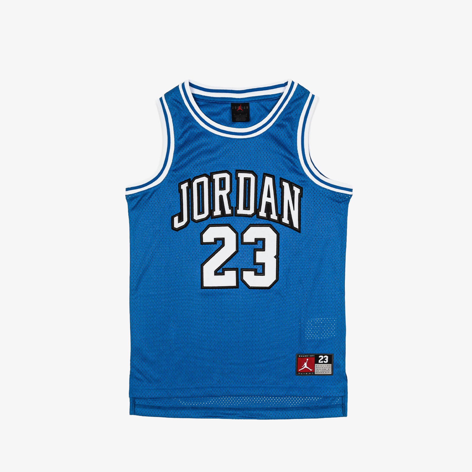 A simple design that is reminiscent of Jordan’s on-court jersey with the Chicago Bulls. The jersey is made with a soft, breathable mesh polyester and features stitched Jordan 23 detailing on the front and back. The sides come with small slits either side for easy movement and a jock tag above the hem.