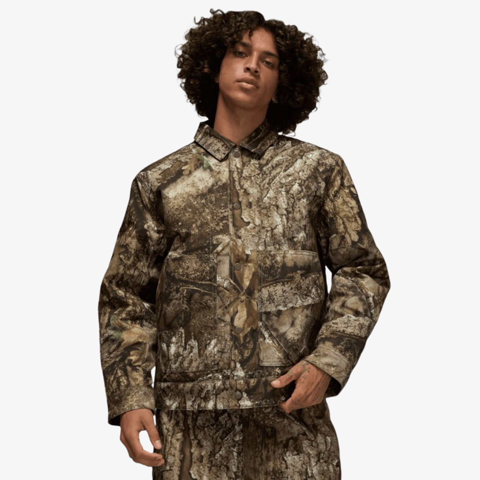 Jordan meets Realtree in this loose-fitting canvas jacket. Workwear inspired, this jacket comes with metal press studs on the front.