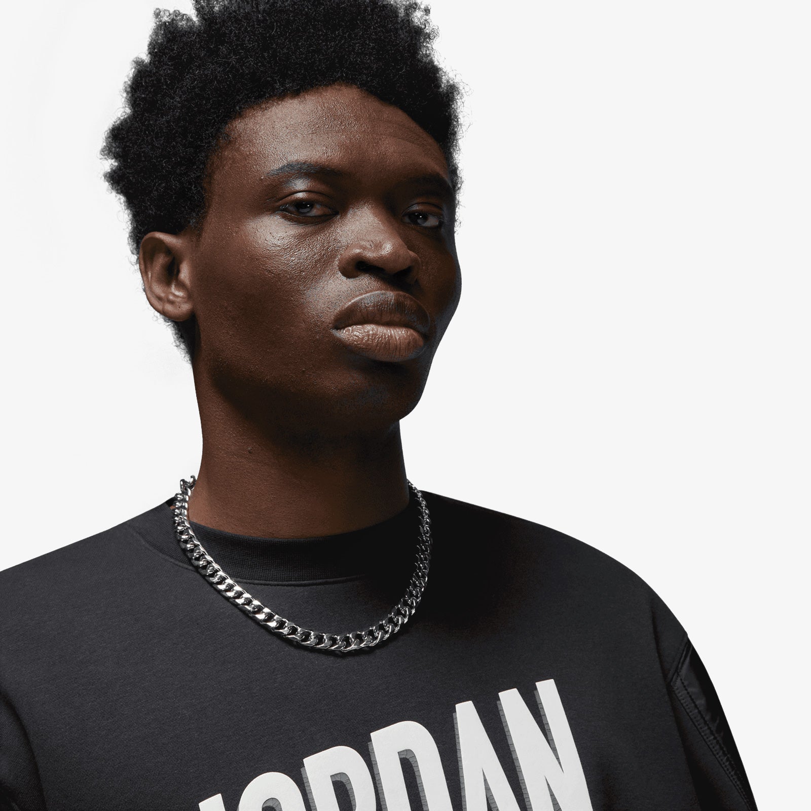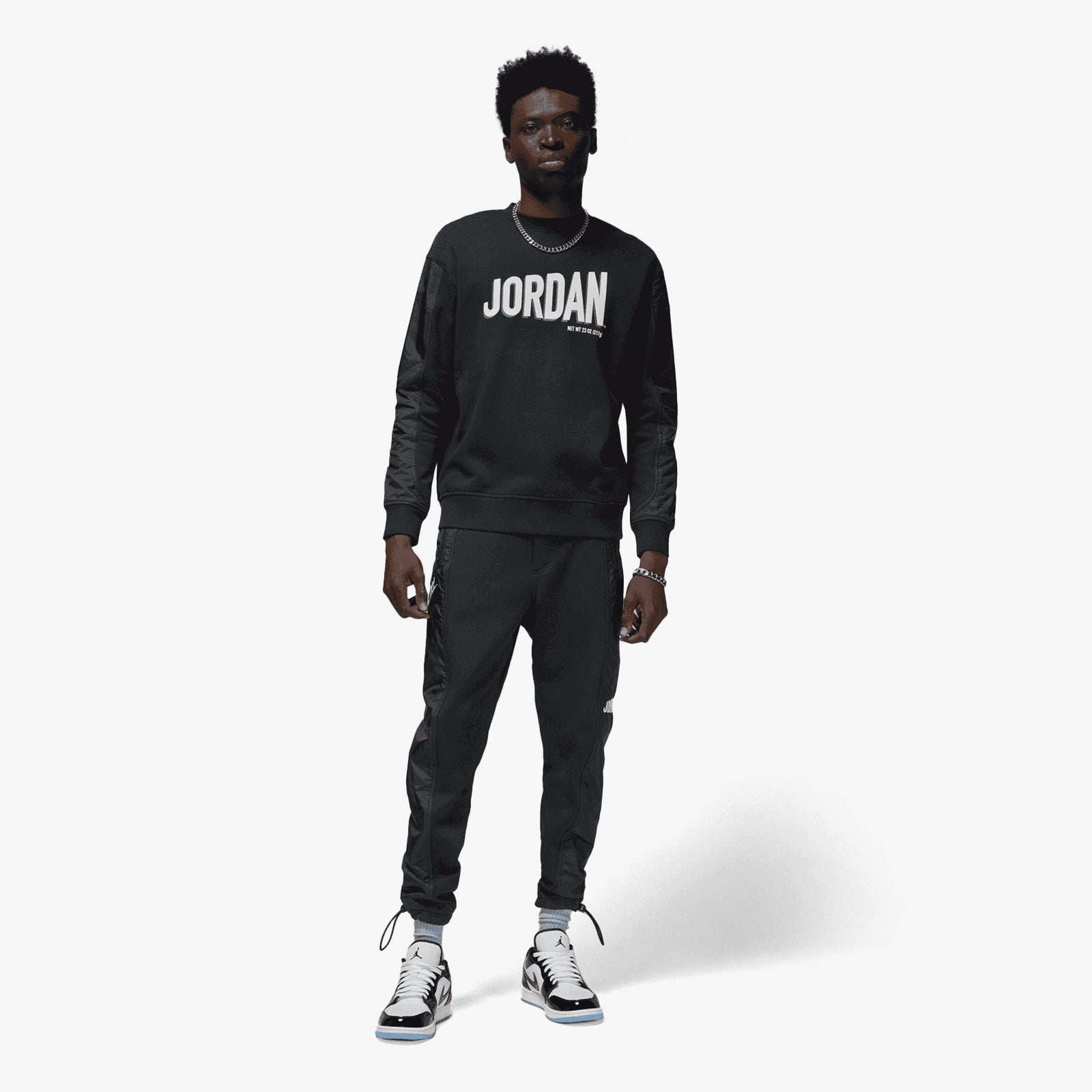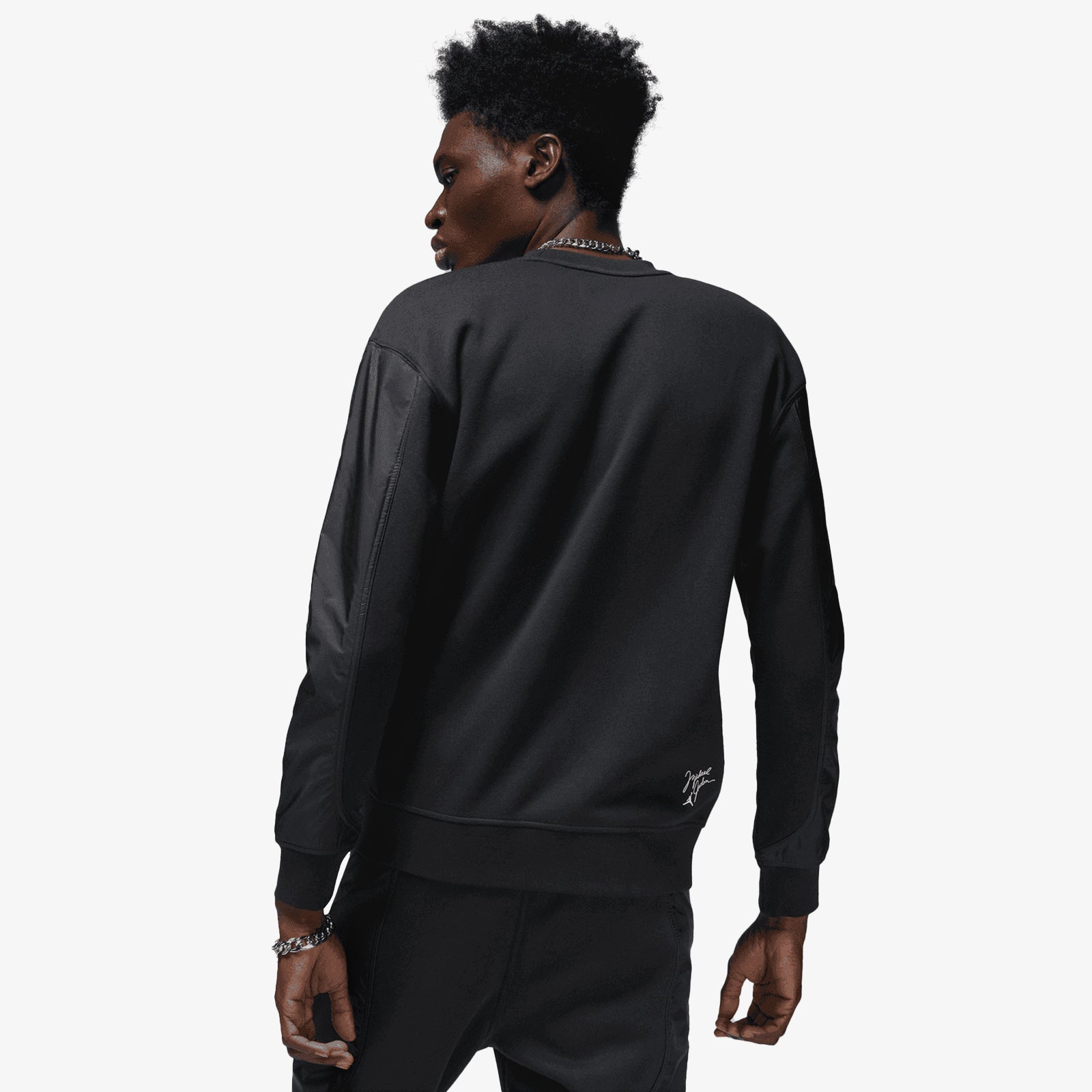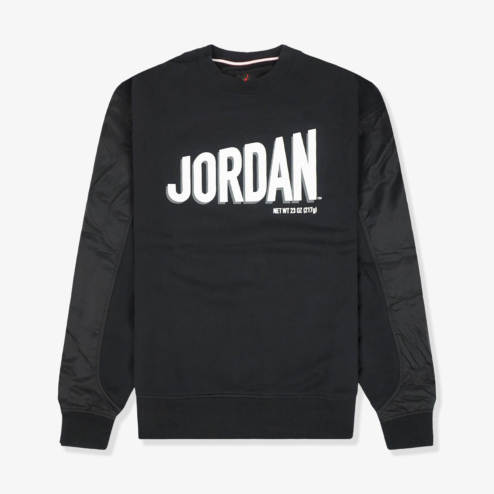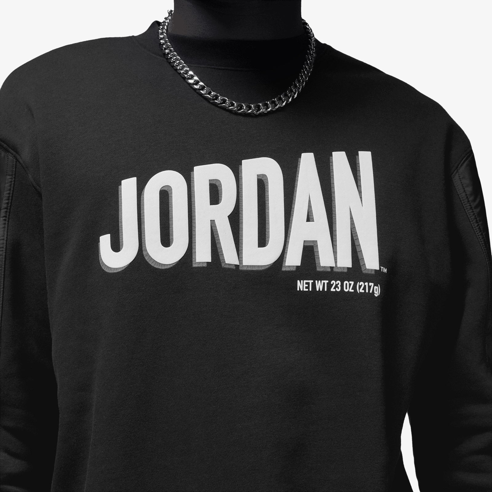 Wheaties inspired black Jordan Workmark sweatshirt. Thick, warm and comfortable, this fleece sweatshirt celebrates your favourite icon. Woven arm panels and a bold, puffy print give your look just enough texture to stand out.