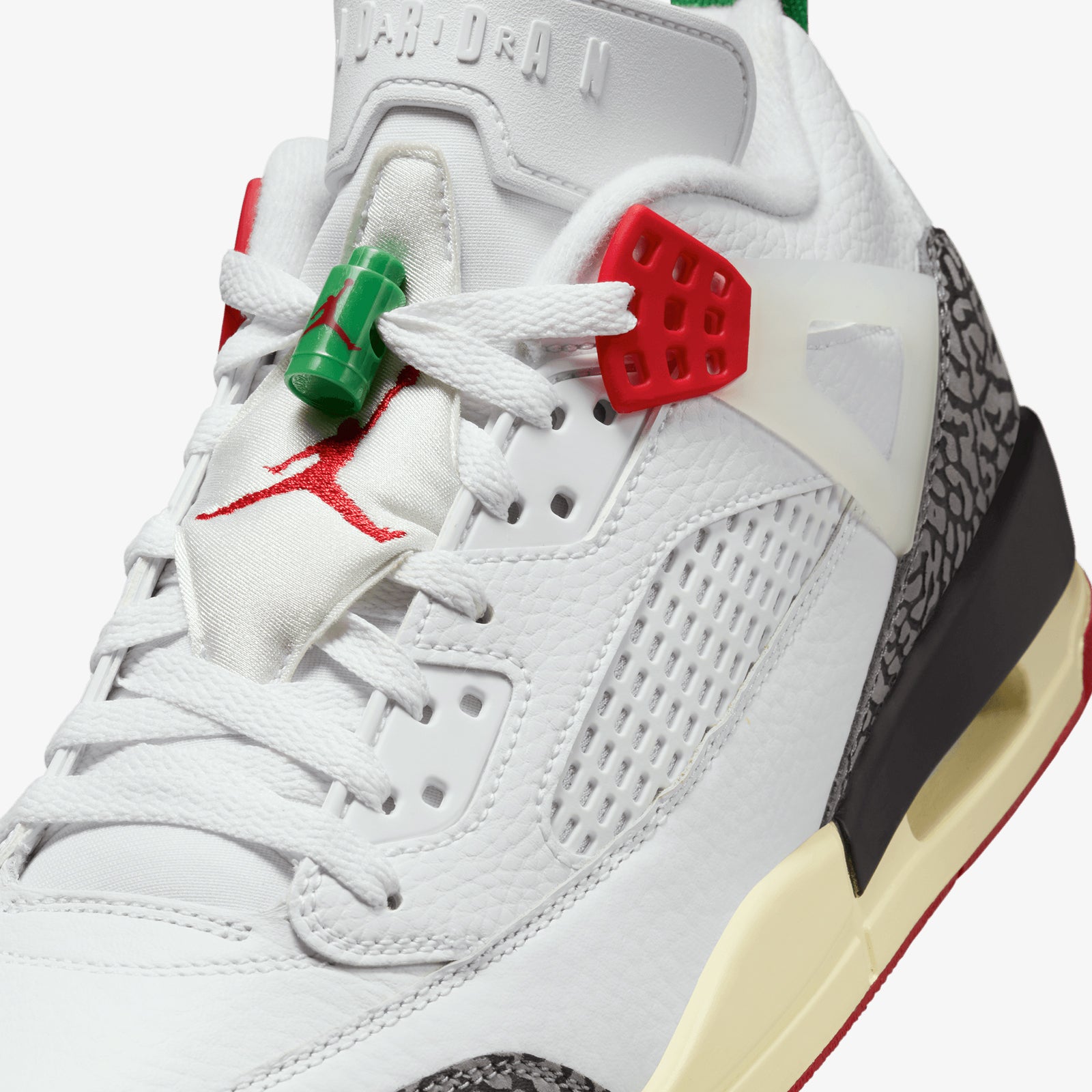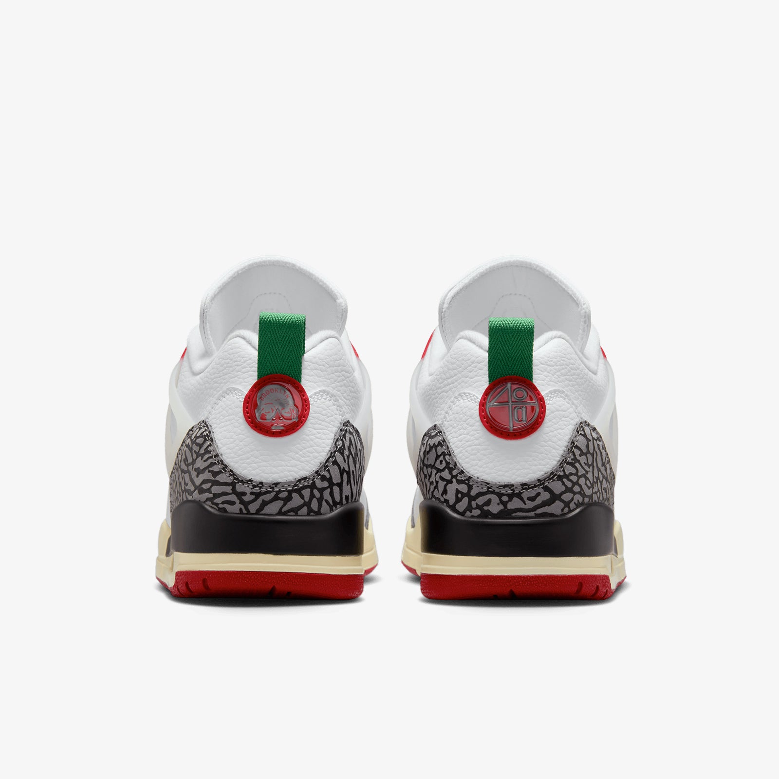 Level up your rotation with the men’s Jordan Spizike Low. Dressed in a Black colourway, this pair fuses details from five legendary Jordan silhouettes into one bold design. The upper combines genuine and synthetic leather for a premium feel, secured with tonal laces and a padded collar for a locked-in fit. Underfoot, a lightweight foam midsole and Nike Air cushioning deliver all-day comfort, while the durable rubber outsole keeps you steady on every step. Finished with iconic Jordan branding throughout.