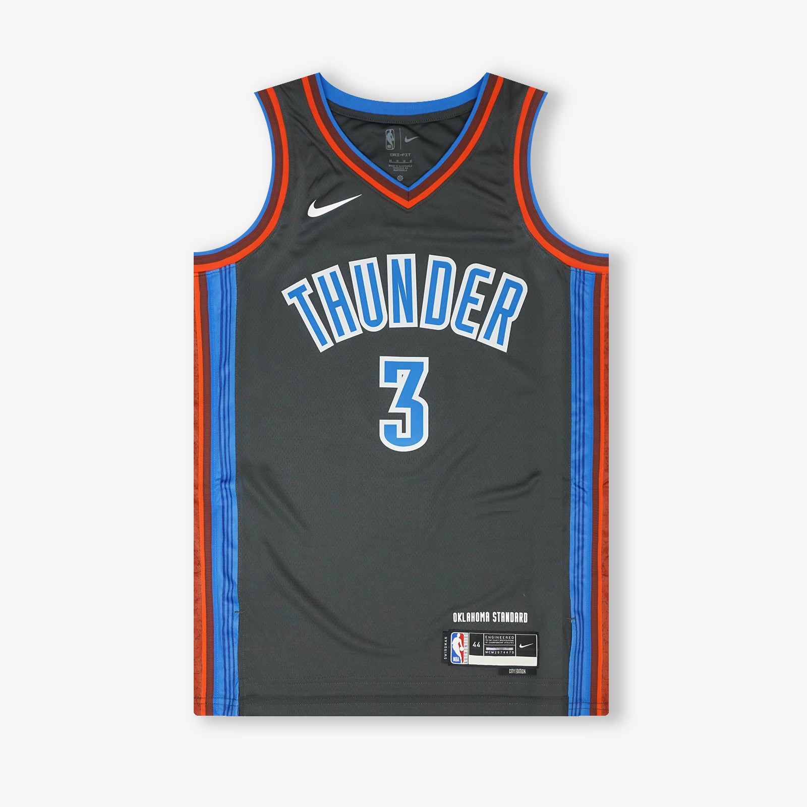 The "Thunder from Down Under", Josh Giddey. This season's Thunder City Edition design represents the collective experiences of what it means to be an Oklahoman. The use of THUNDER across the chest unifies the state, from the Red River to the plains to the panhandle.