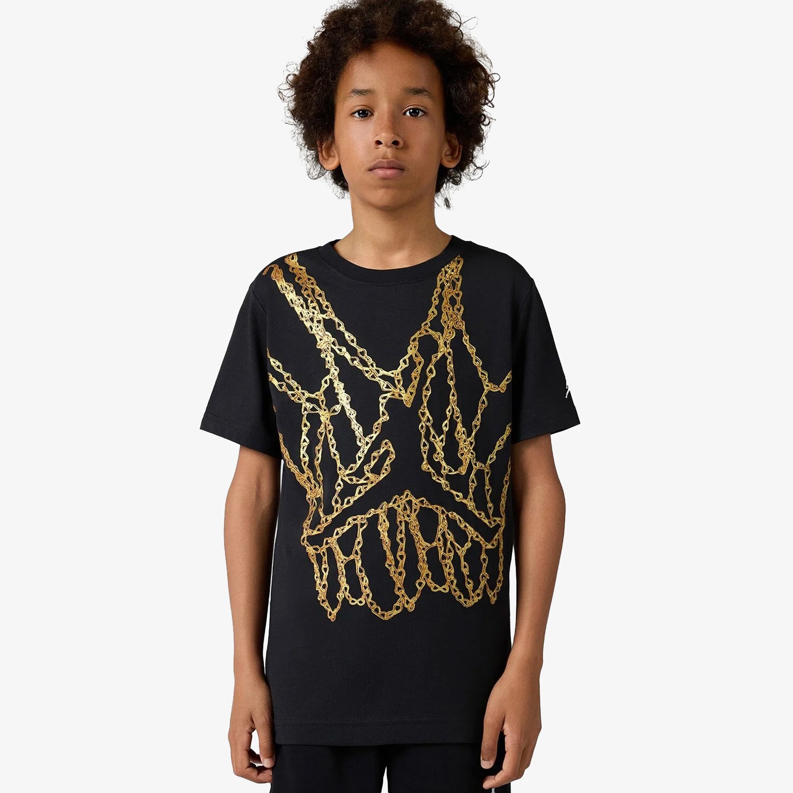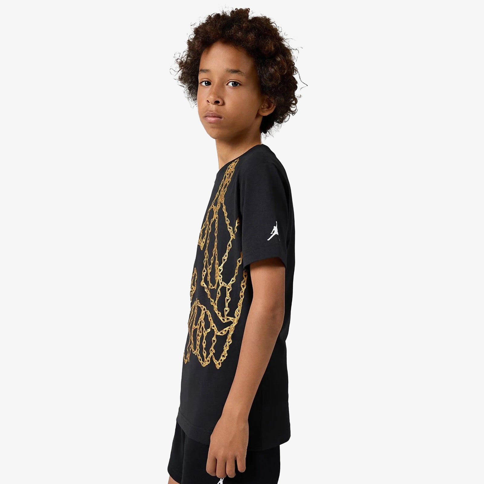 Let them show off their hoop dreams with the Jordan Junior Chains Graphic T-Shirt. Featuring a round neck, Jordan branding and screen printed graphics, this design is a casual staple that lets them show off their style in comfort.