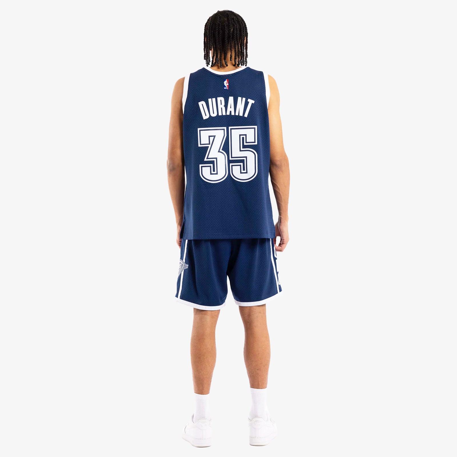 - Mitchell & Ness HWC Swingman woven jock tag and woven label 2015-16 KEVIN DURANT at lower left front.