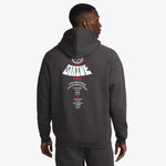 Black hoodie with stylised LeBron XX logo in celebration of his 20th NBA season and signature sneaker with Nike. The back has a "tour dates" style graphic honouring the 3 NBA teams LeBron has played and delivered Championships for: Cleveland, Miami and Los Angeles.