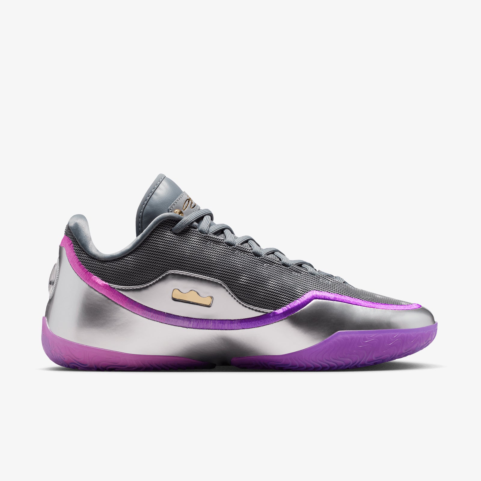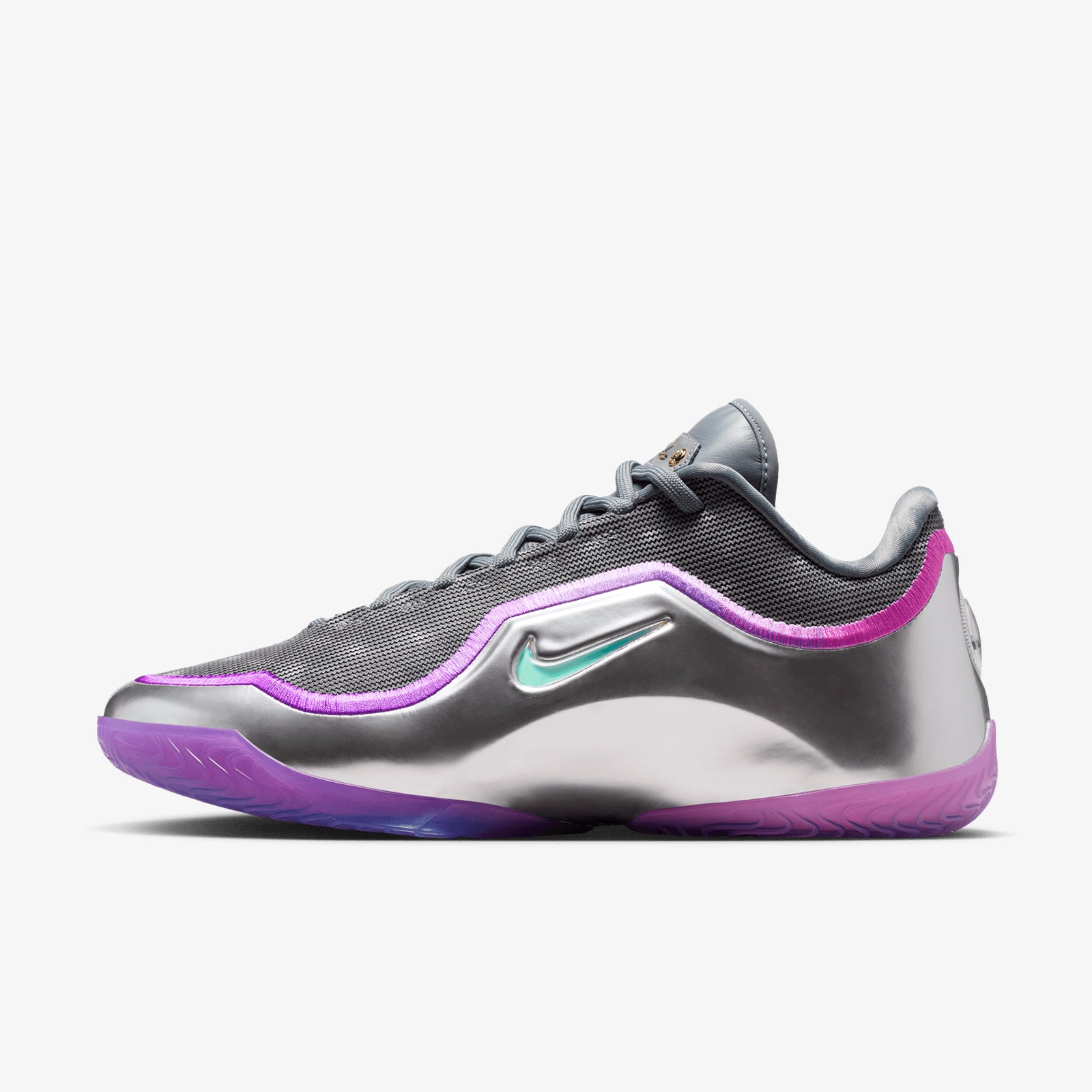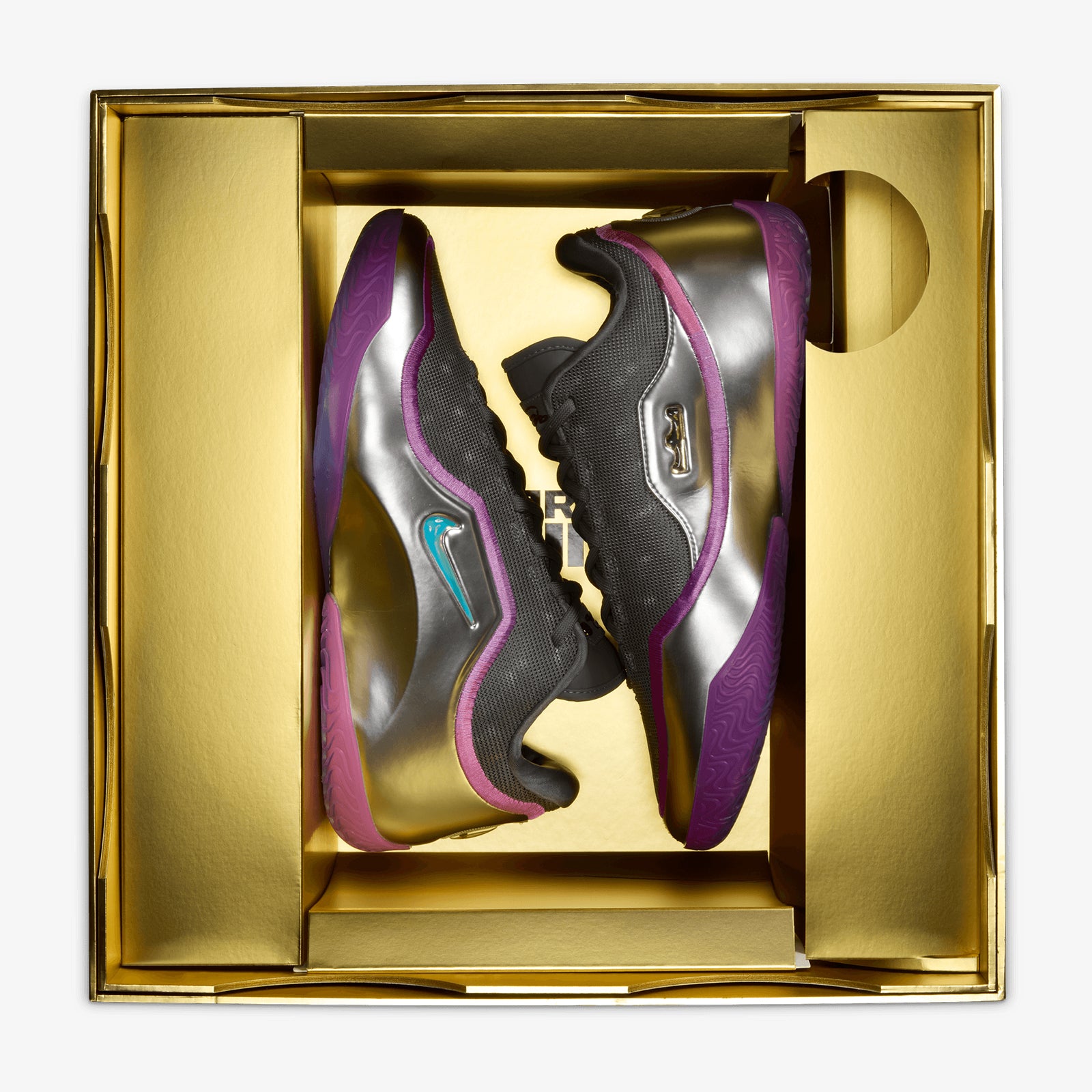 Bron’s 2020 title in The Bubble might have been the toughest of the four, considering the circumstances. But LeBron led as only he could and came out with another crown. The silver iridescent upper is reminiscent of an actual spherical bubble’s exterior. Both Swoosh logos are jeweled—salutes to the hard-earned 4th ring. And purple hits pay homage to the franchise Bron helped carry to a 17th championship.