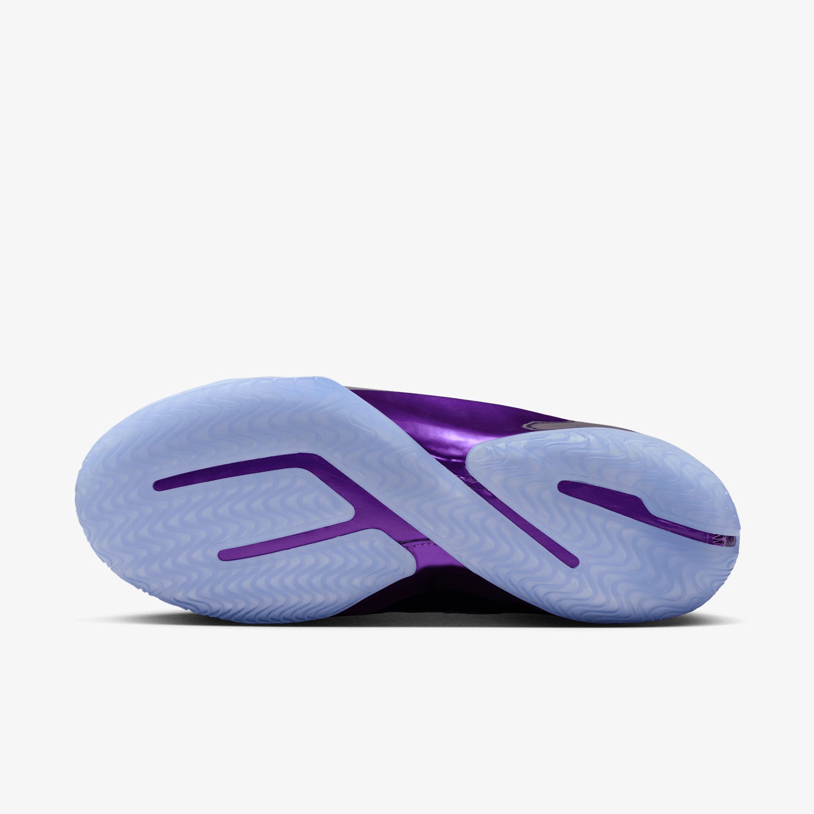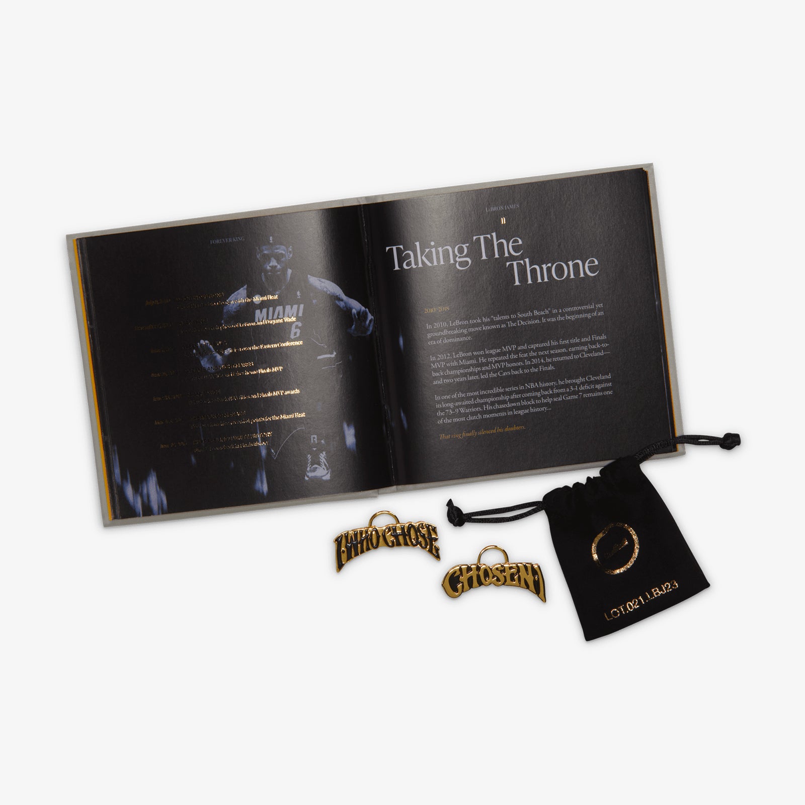 The right shoe is all about LeBron, complete with his signature gold, as well as his "Chosen 1" icon on the heel, a nod to his storied career. The black-and-purple left shoe honours Bronny with his own "1 Who Chose" heel decal, symbolising his individual path in the game. The upper pattern on both shoes is a mix of large crowns (saluting LeBron's long-standing reign) and small crowns (signifying Bronny's promise).