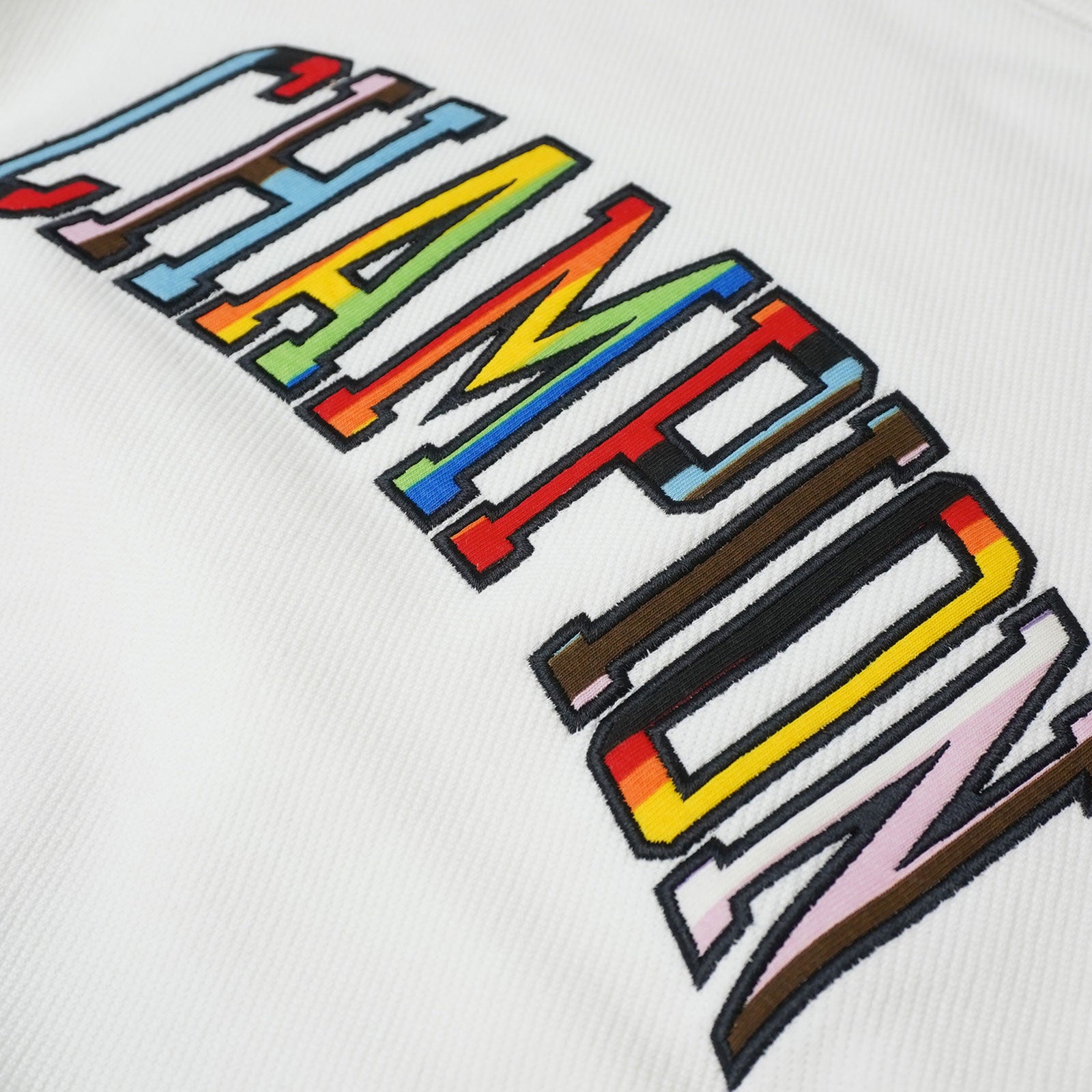 Champion Crew with a unique pride-inspired wordmark print on every item. Champion Lifestyle Pride crew pullover that's fit for champions