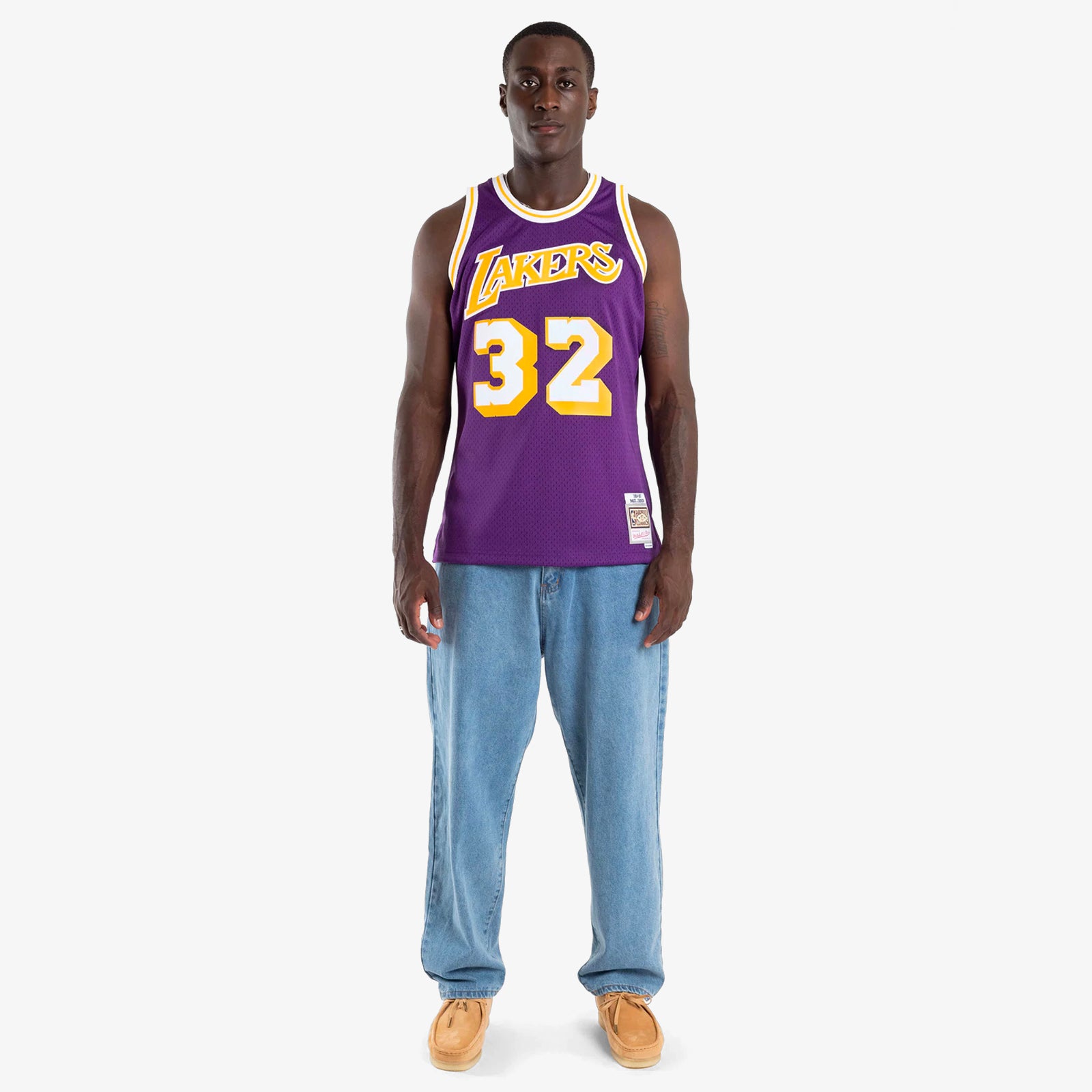 From the Mitchell & Ness hardwood classic range this vintage style of jersey pays homage to the away jersey the Lakers wore in 1984-1985. Magic Johnson played a key role for the Lakers this year, as the Lakers beat the Celtics for the first time in the NBA finals. The Lakers also became the only team to have defeated the Celtics in the NBA finals while on the road.