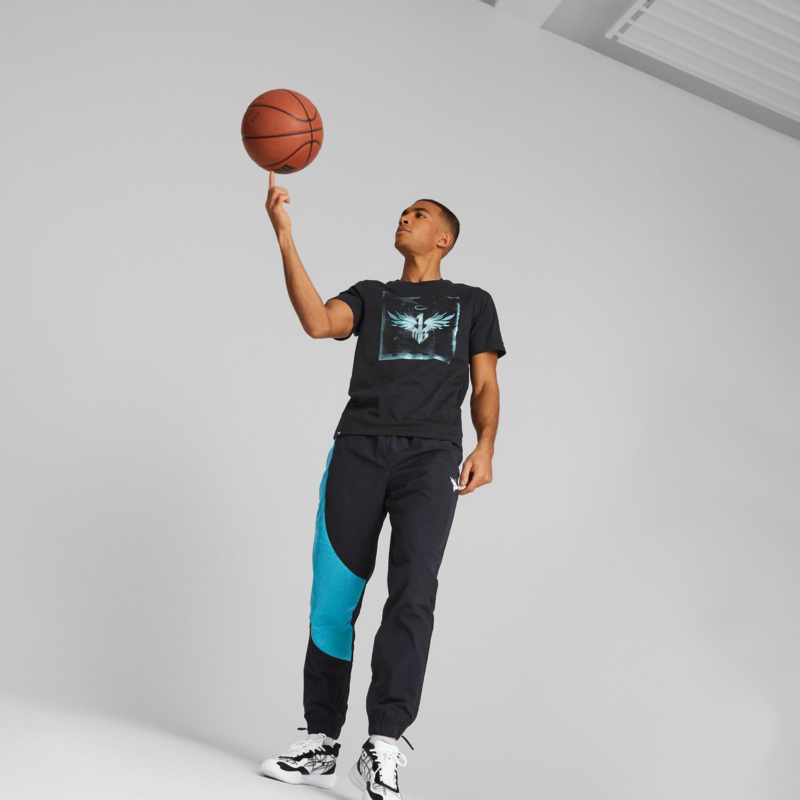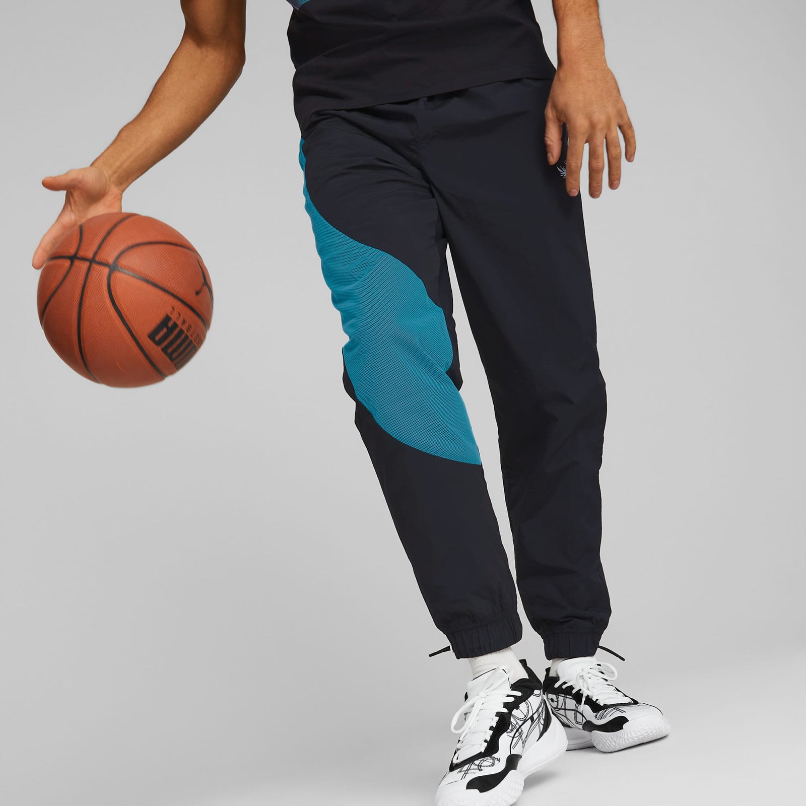 In Black and Charlotte teal, look as bold as LaMelo Ball hoops in these basketball pants. The contrast design details will have you catching looks the next time you head to the court.