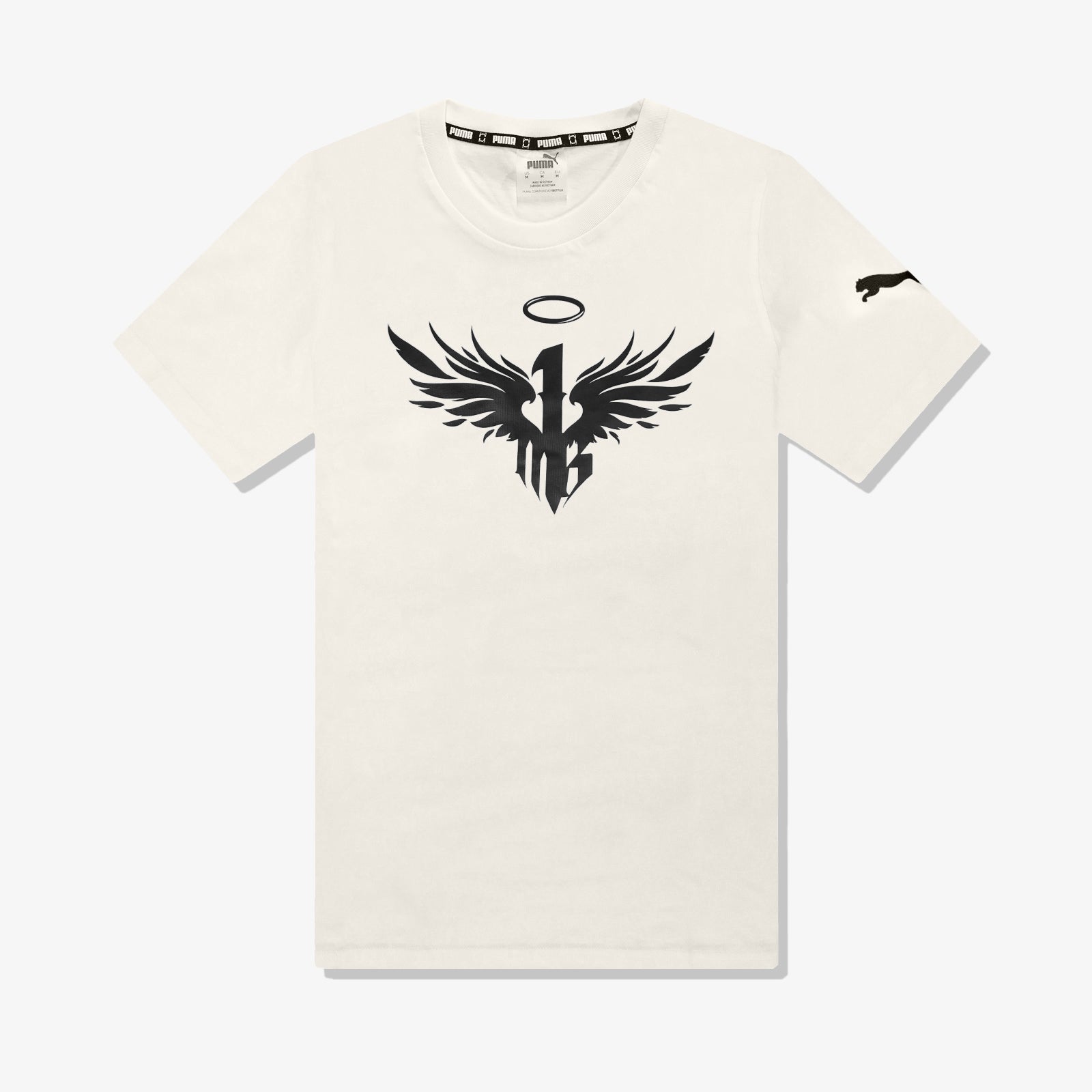Stylised graphic tee for LaMelo Ball. Featuring Melo's wings logo on the chest and a distressed graphic on the back.