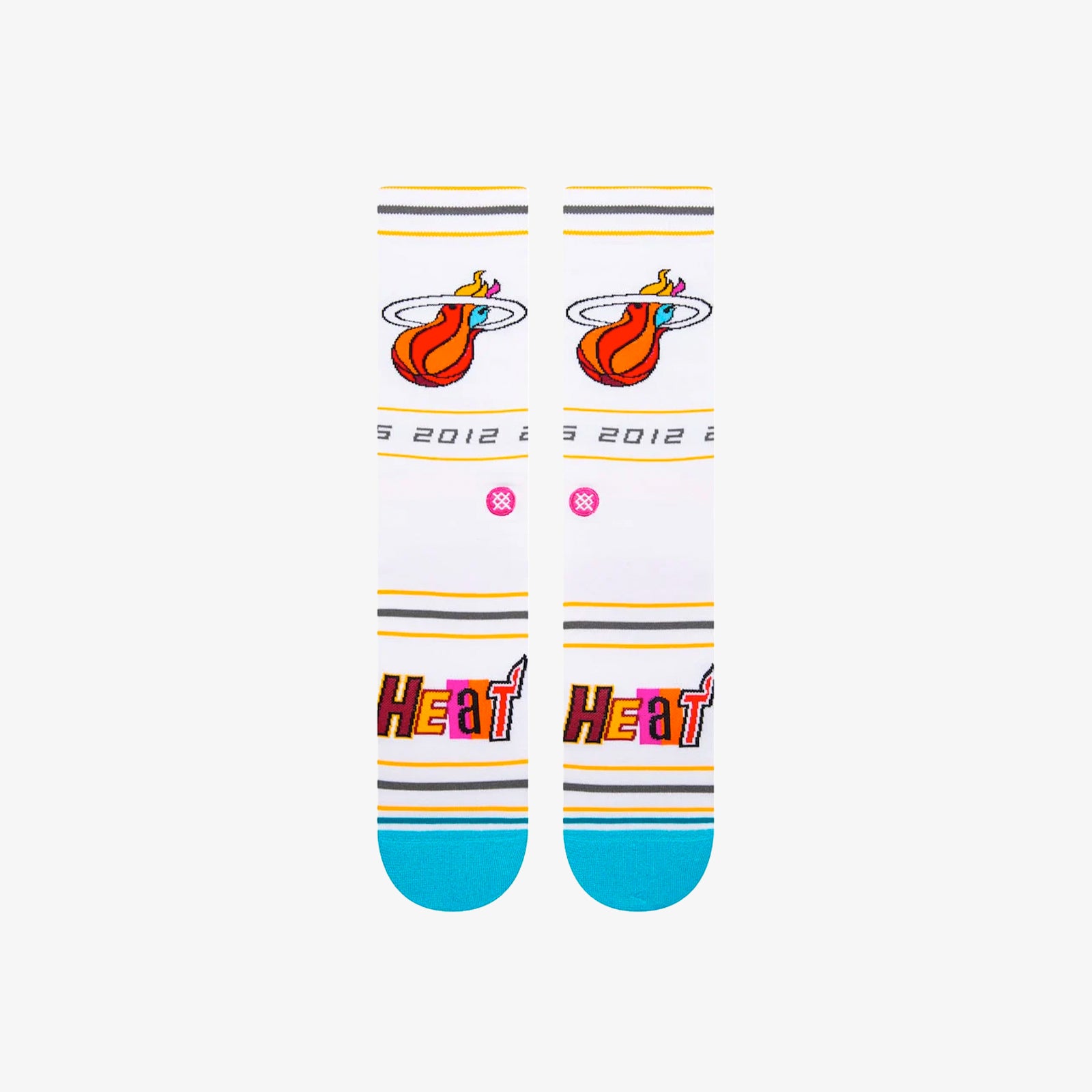 Your 2022-23 City Edition socks for the Miami Heat. A follow-up to the original groundbreaking Miami Mashup concept, this uniform swaps black for white as the base colour, while keeping all of the original design elements intact.