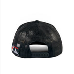 Featuring embroidered custom graphics, adjustable snapback closure and mesh panels.