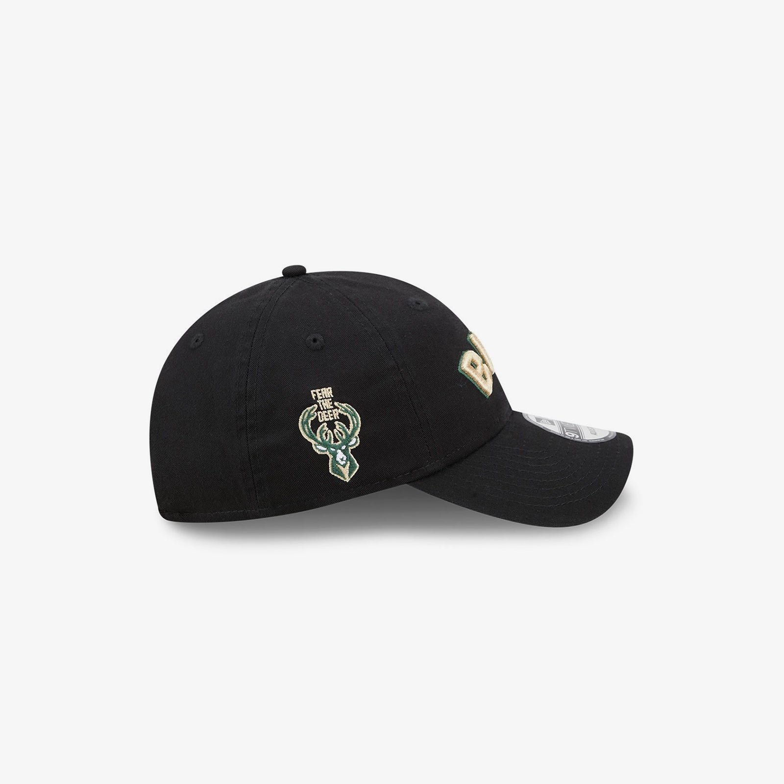 Black dad style cap repping Giannis Antetokounmpo and the Milwaukee Bucks. Adjustable strapback in the Bucks' Statement Edition style.