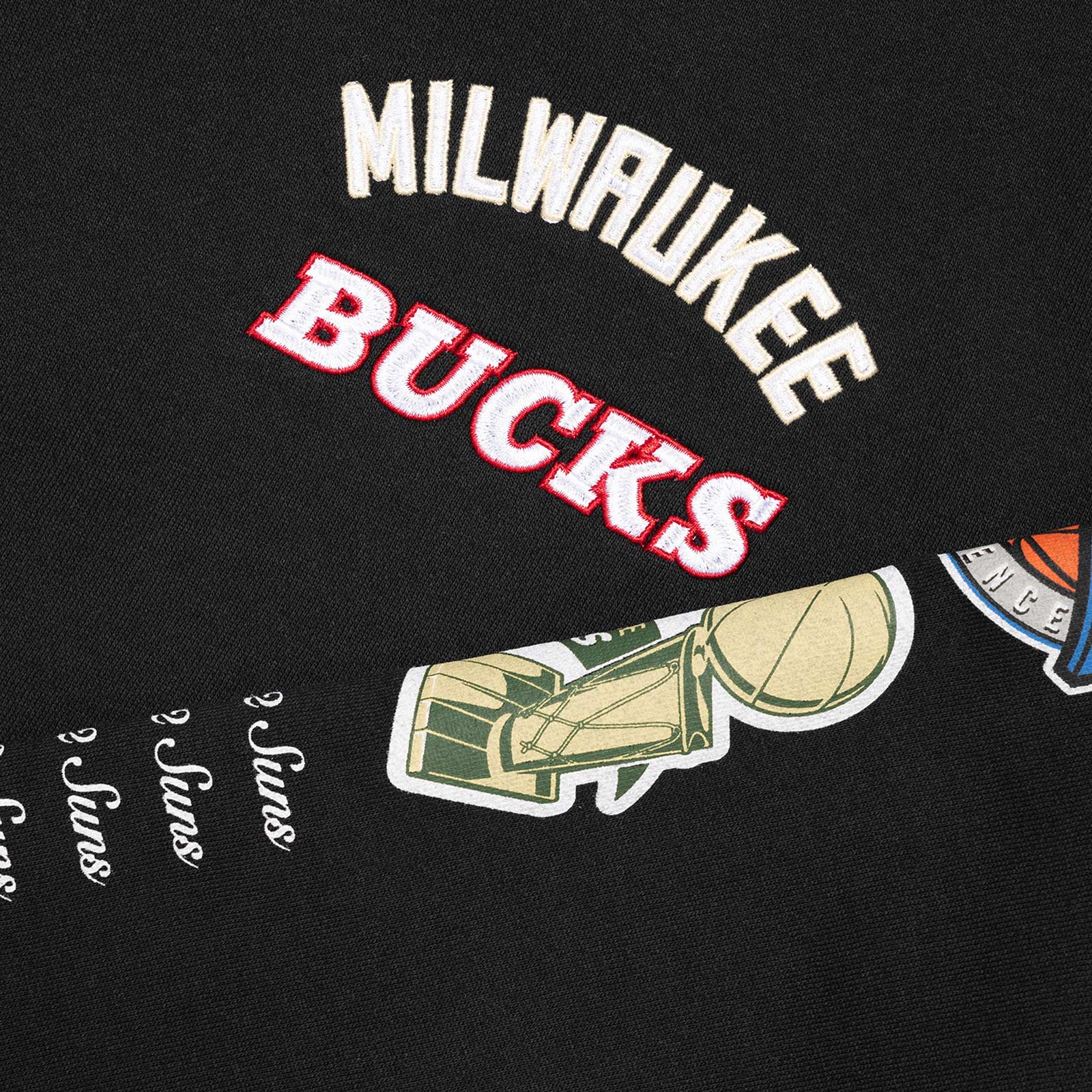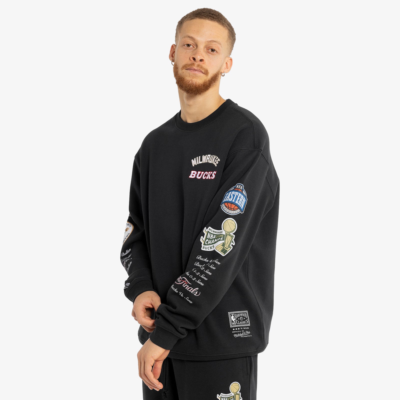 Black crew sweatshirt celebrating the Milwaukee Bucks and their championship pedigree. Led by NBA greats Kareem and Giannis, the Bucks have won 2 NBA Championships, the first team to win representing both the East and Western Conferences.