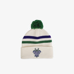 Unbleached Team Logo Pom Beanie repping the Milwaukee Bucks and their franchise history. Featuring a 40th Anniversary logo, from the team's inception in 1968 to 2008. The Bucks' have won two championships with NBA75 greats Kareem Abdul-Jabbar and Giannis Antetokounmpo.