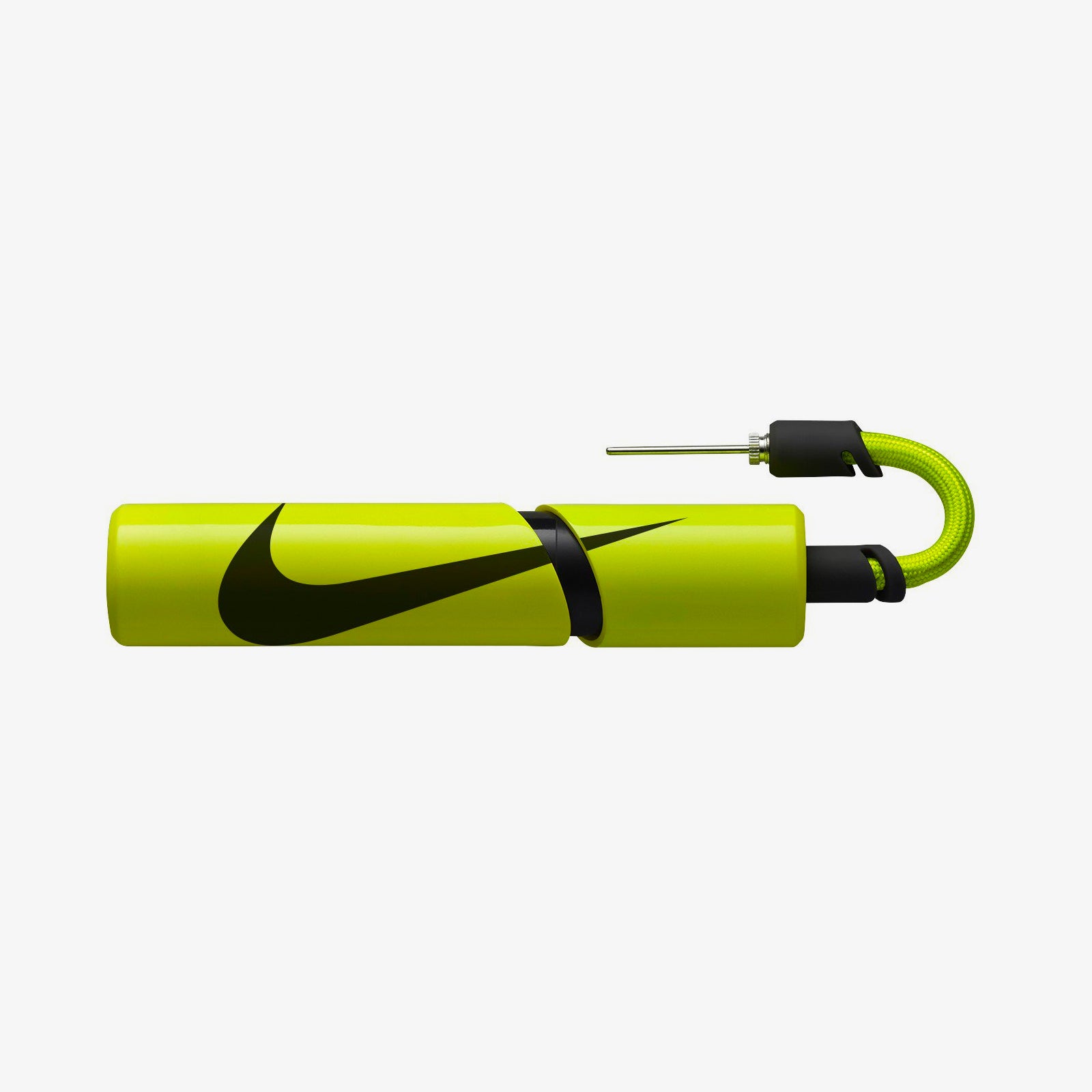 The Nike Essential Ball Pump has a compact design with an attached hose for easy transport. The efficient pump compresses air for fast filling.