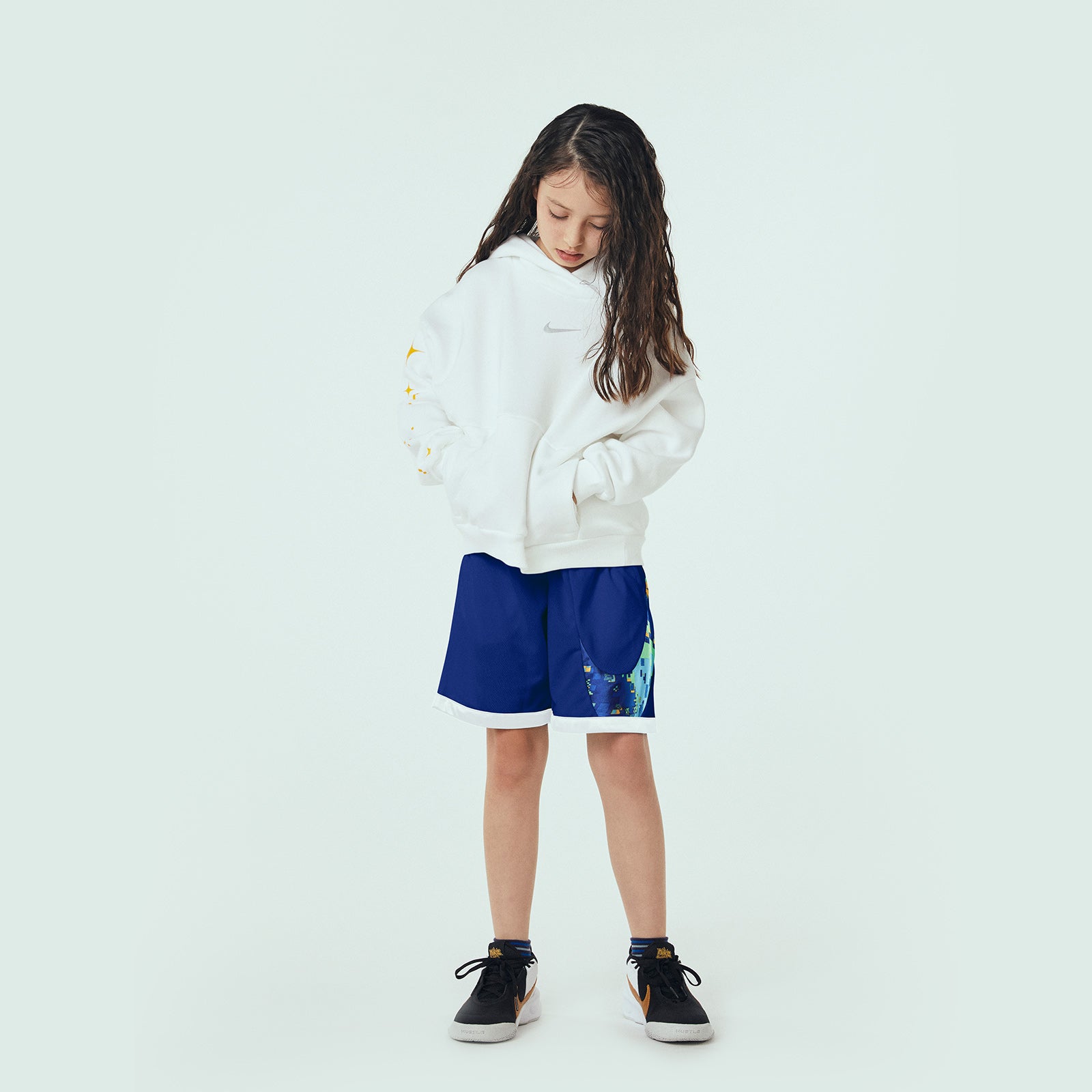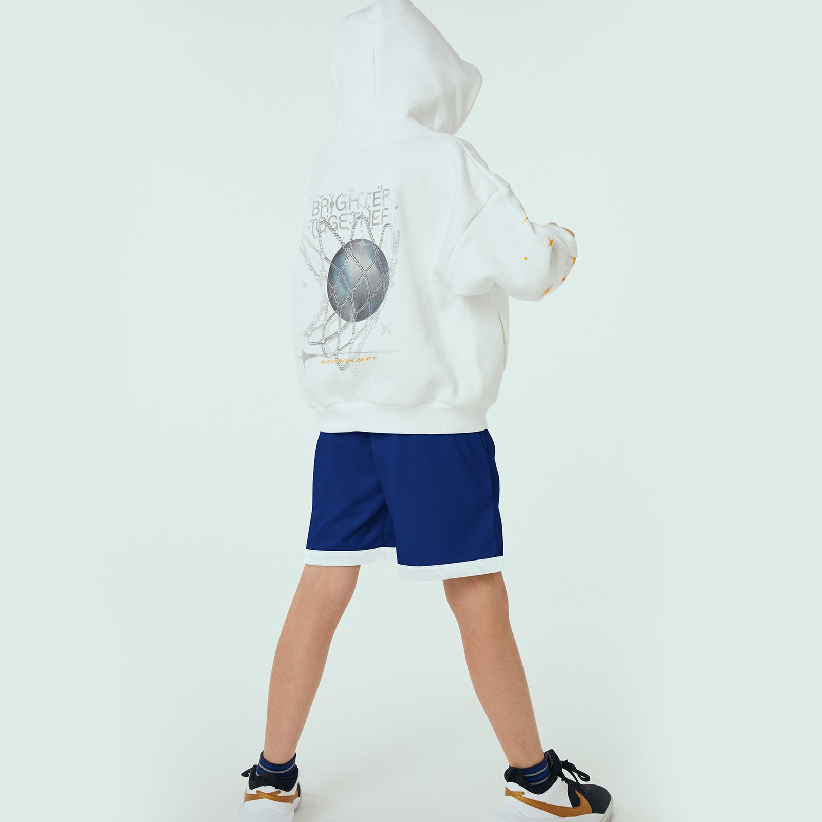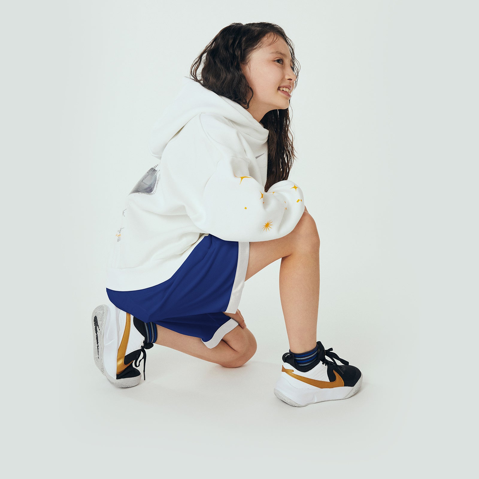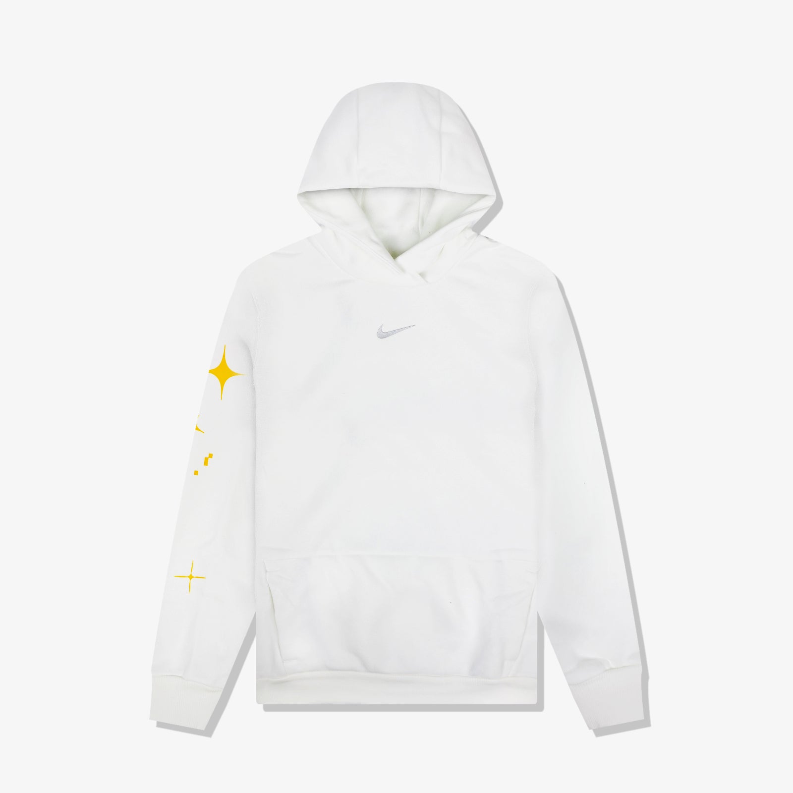 White youth hoodie for the young stars in your galaxy. Inspired by the star within everyone, the Nike Icon Fleece hoodie celebrates what you're great at. "Brighter Together" large print graphics bring extra star power to your oversized soft fleece hoodie.