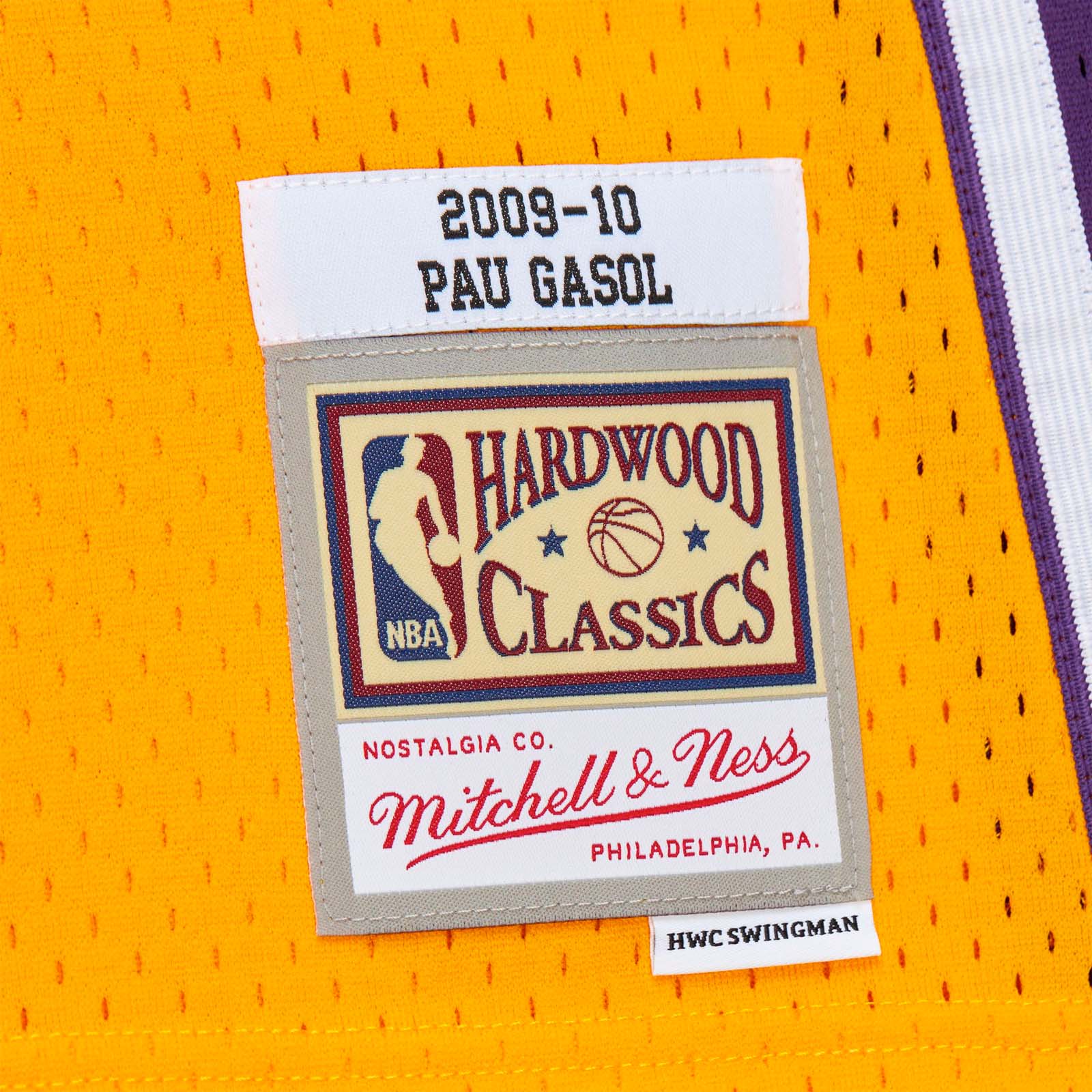 - Mitchell & Ness HWC Swingman woven jock tag and woven label 2009-10 PAU GASOL at lower left front.