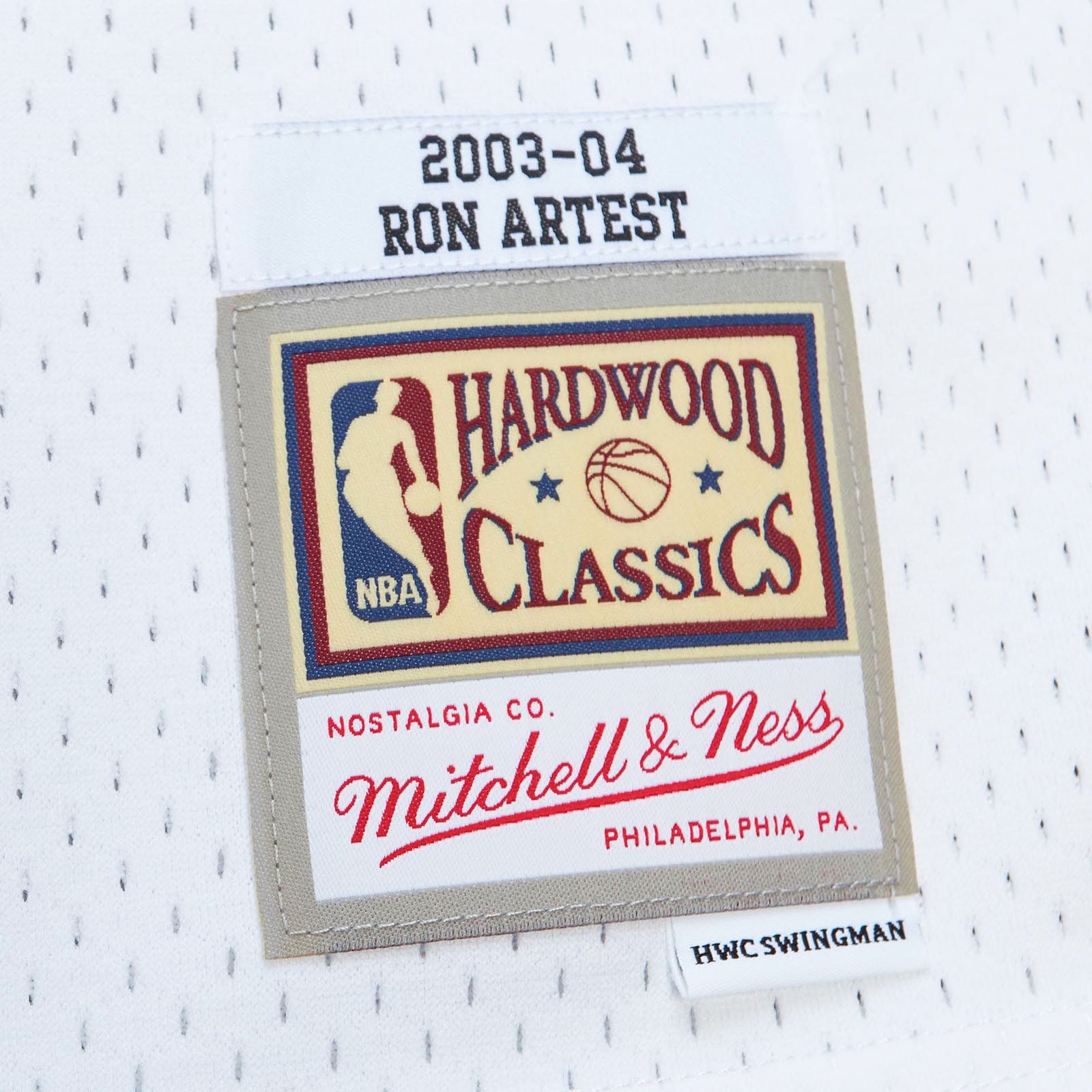 - Mitchell & Ness HWC Swingman woven jock tag and woven label 2004-06 RON ARTEST at lower left front.