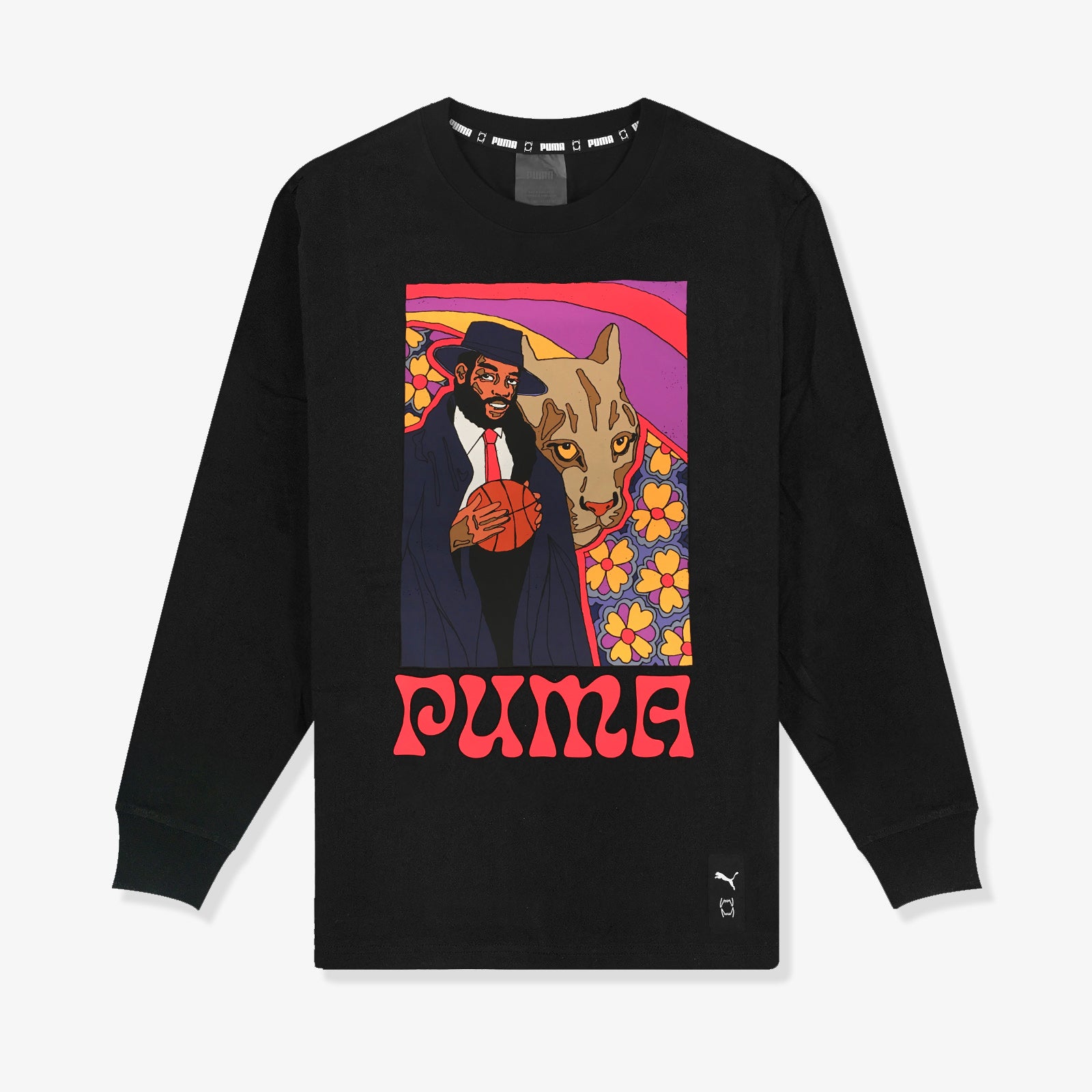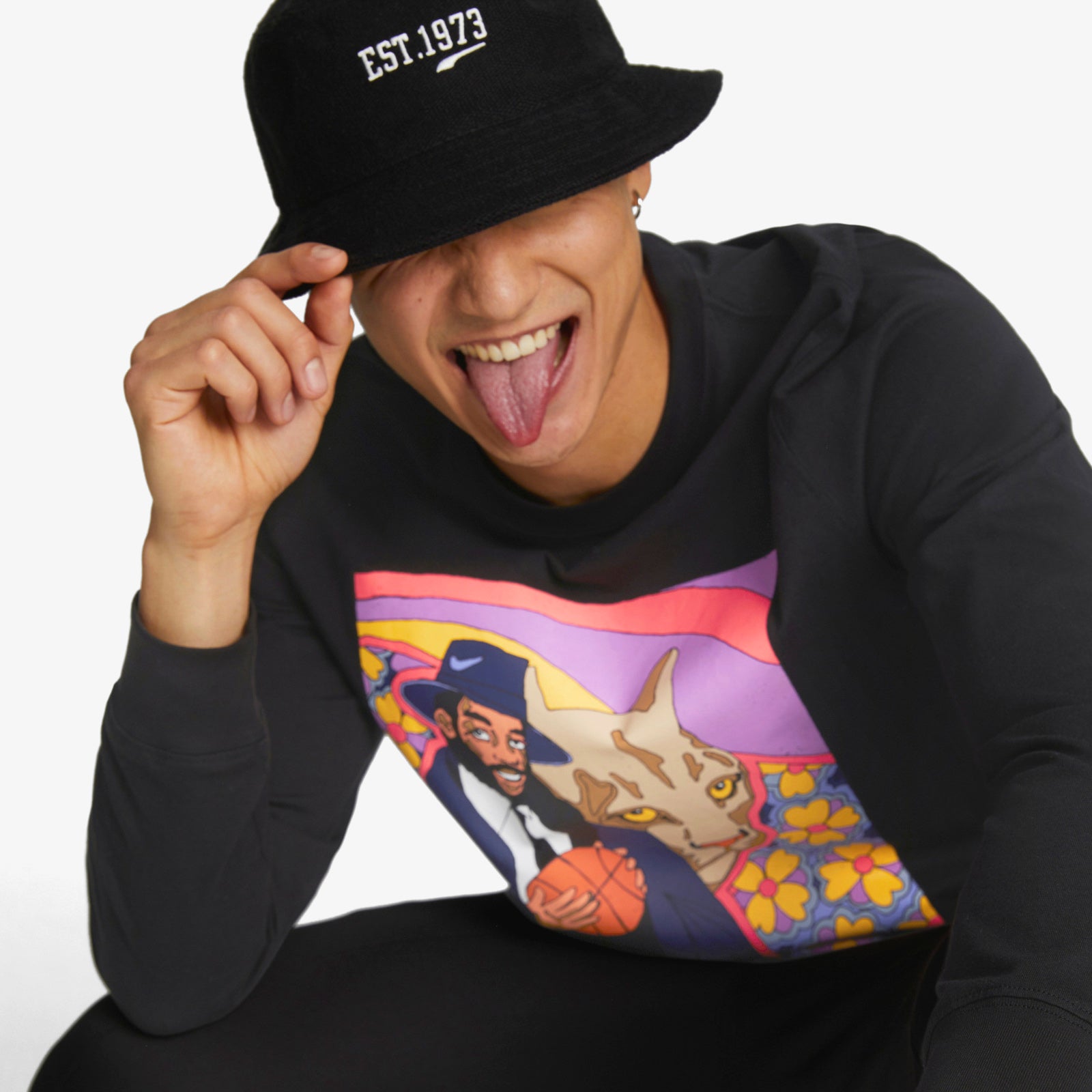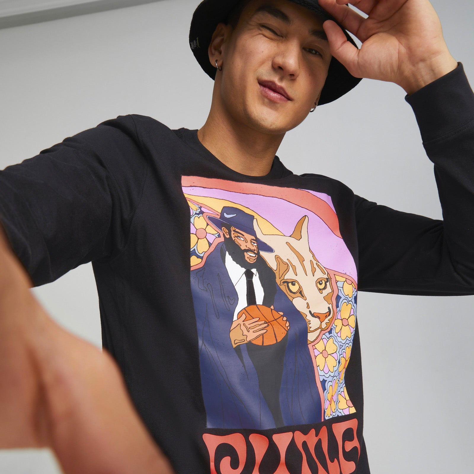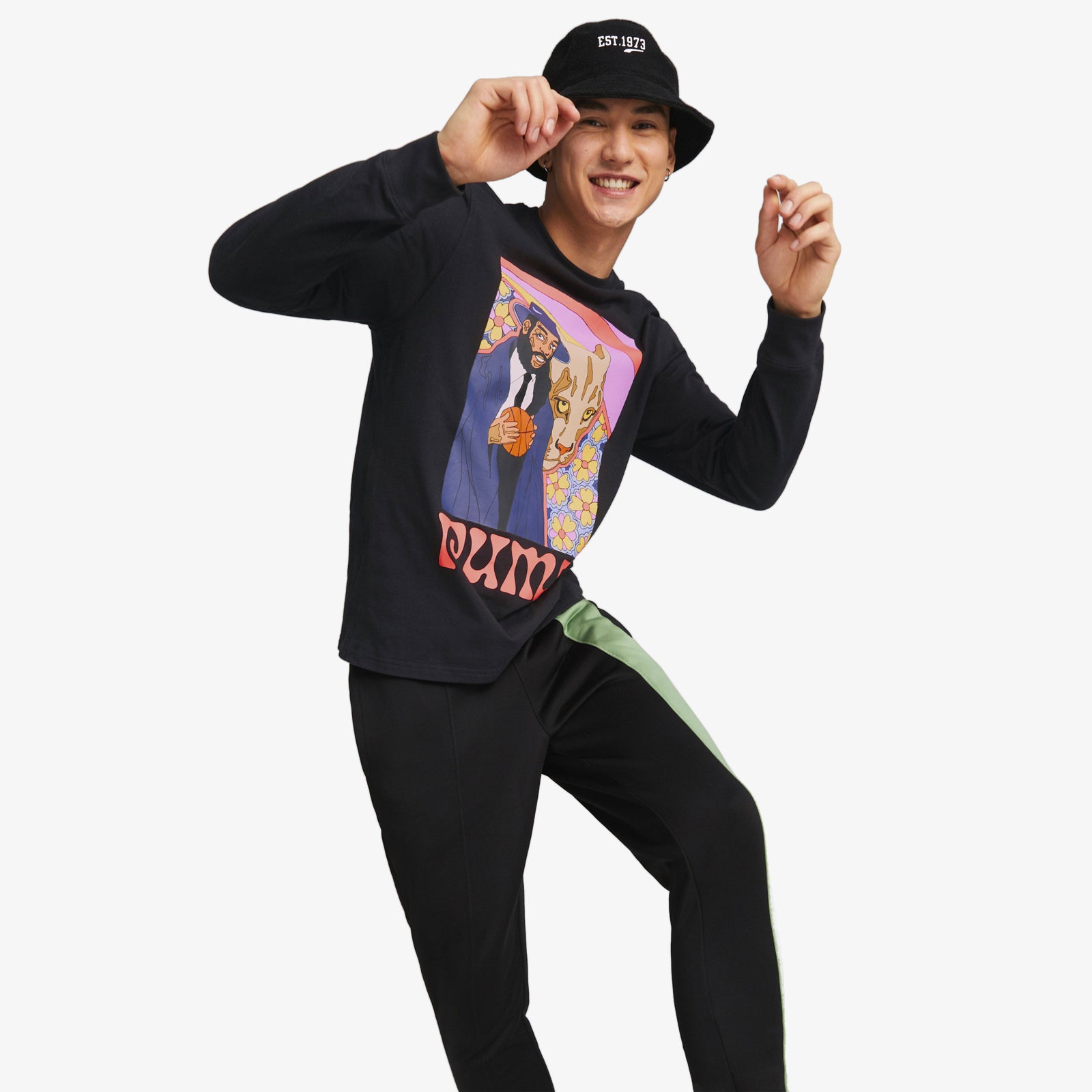 With a nod to the stylish and psychedelic 1960s, this graphic tee is embellished with a basketball-inspired illustration in vivid retro shades. The cut is classic, with an easy, regular fit, a crew neck, and long sleeves that finish in cosy ribbed cuffs. What's more, the 100% cotton construction ensures it feels just as good as it looks.