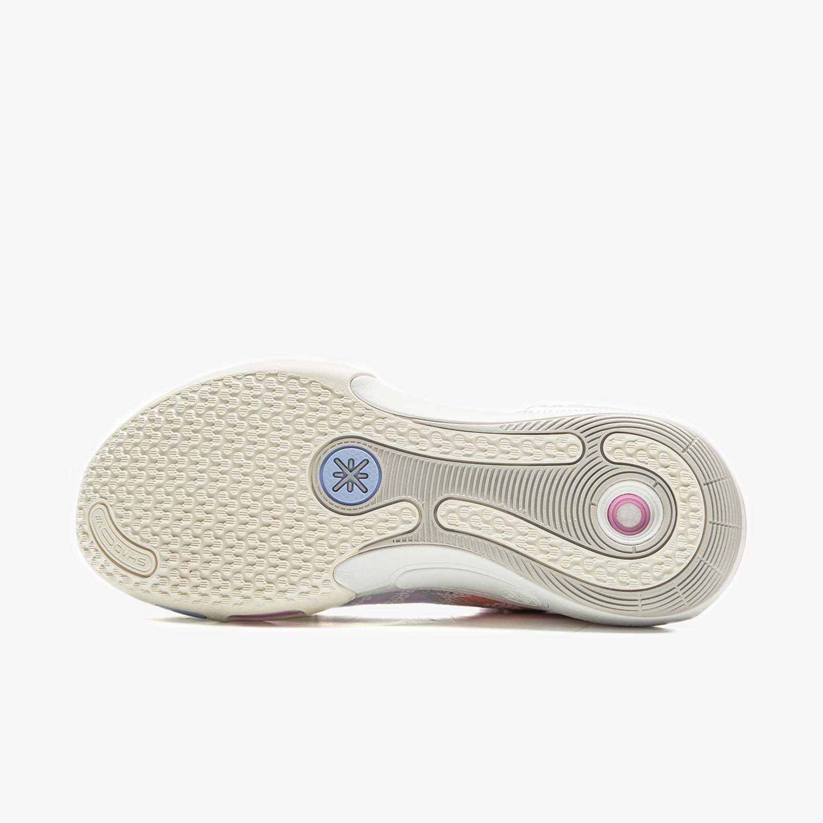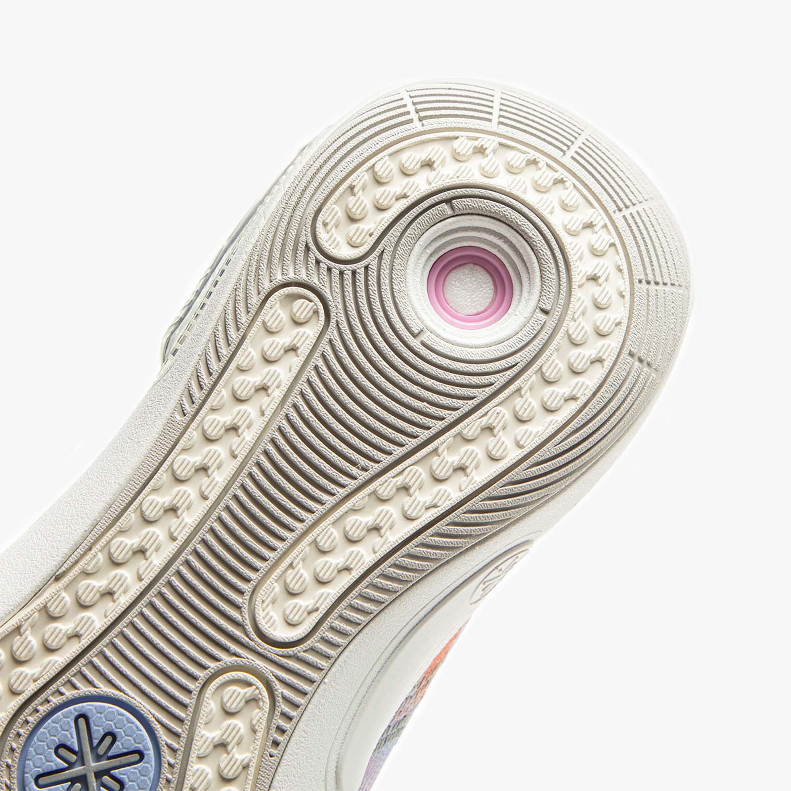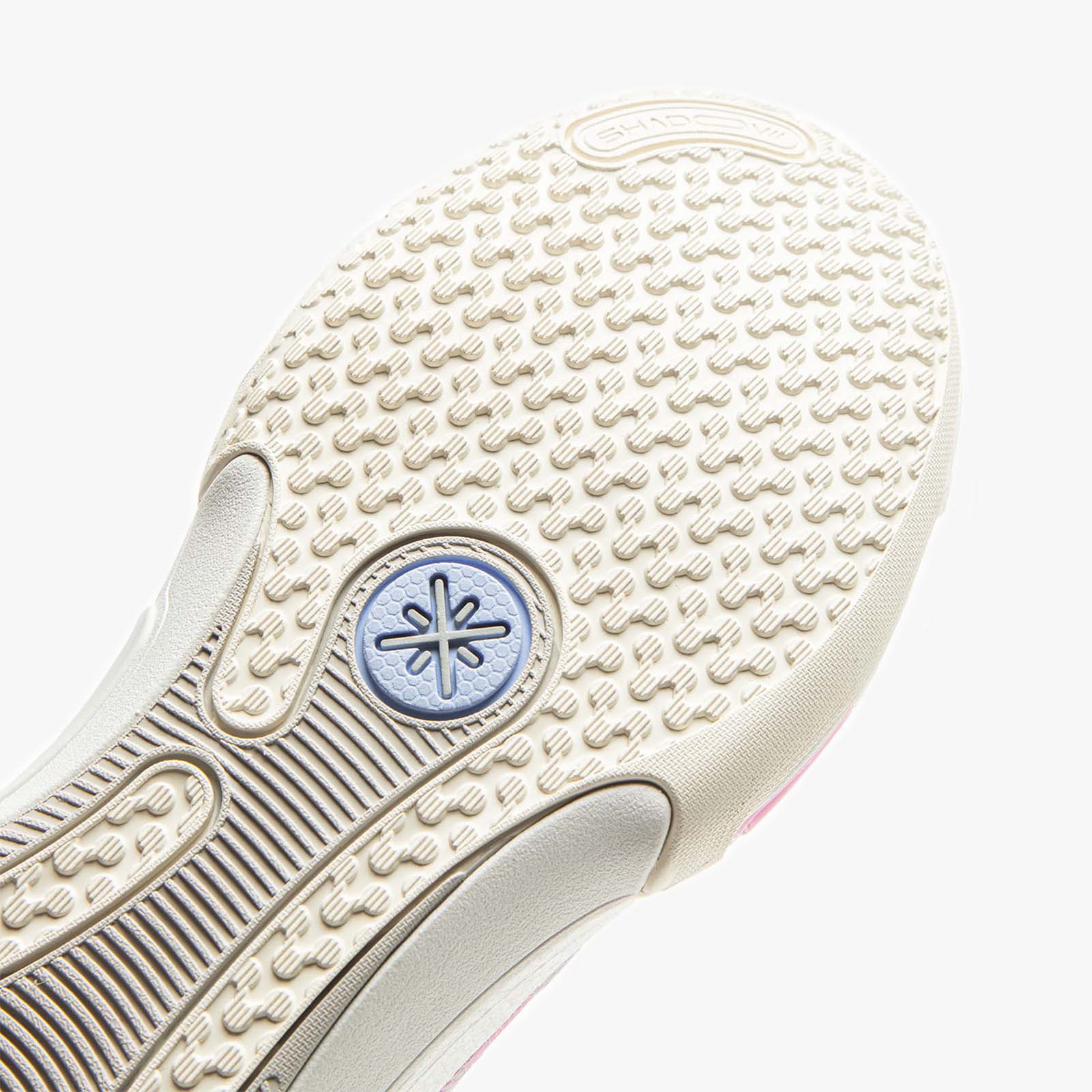 - Translucent rubber outsole with radial pods for multi-direction grip